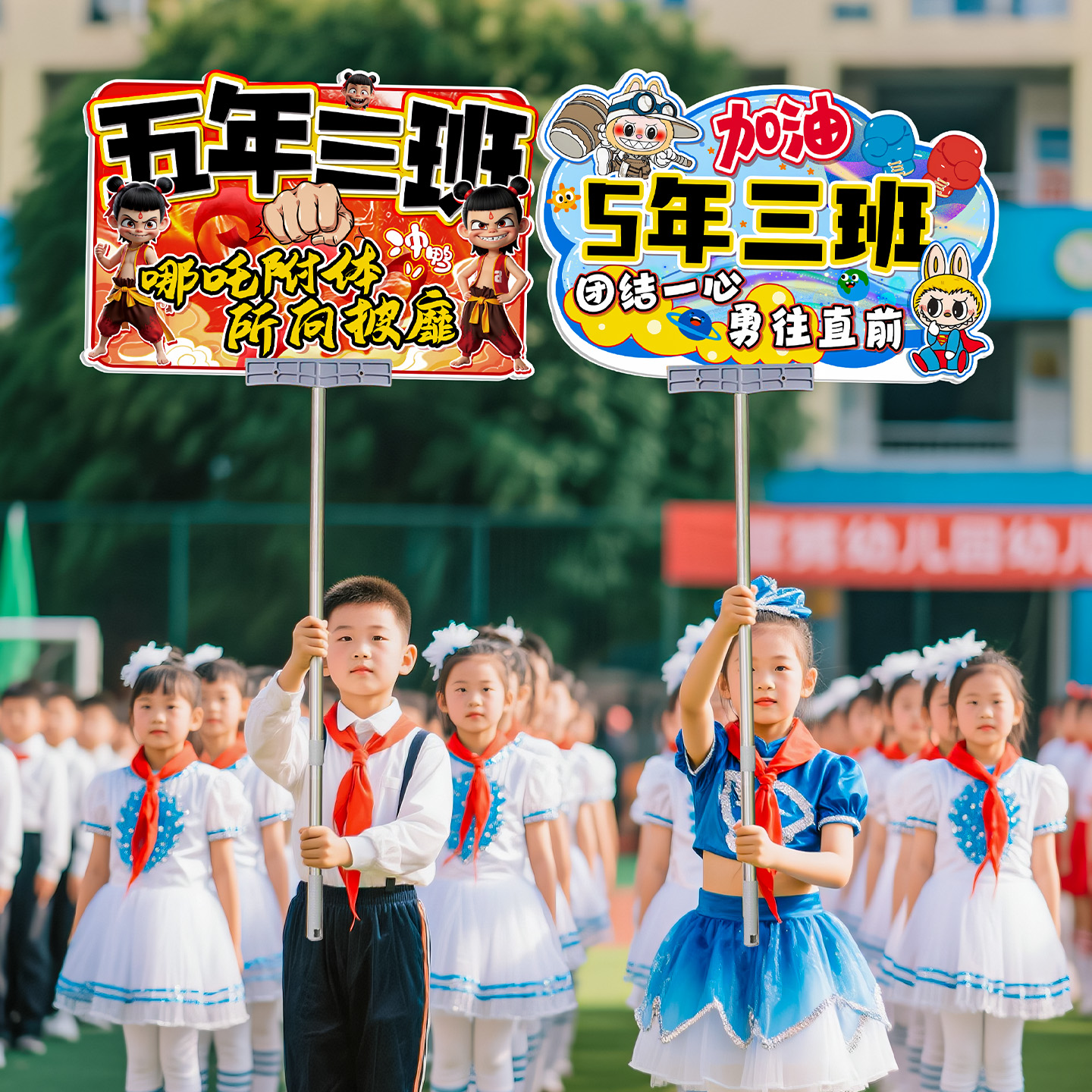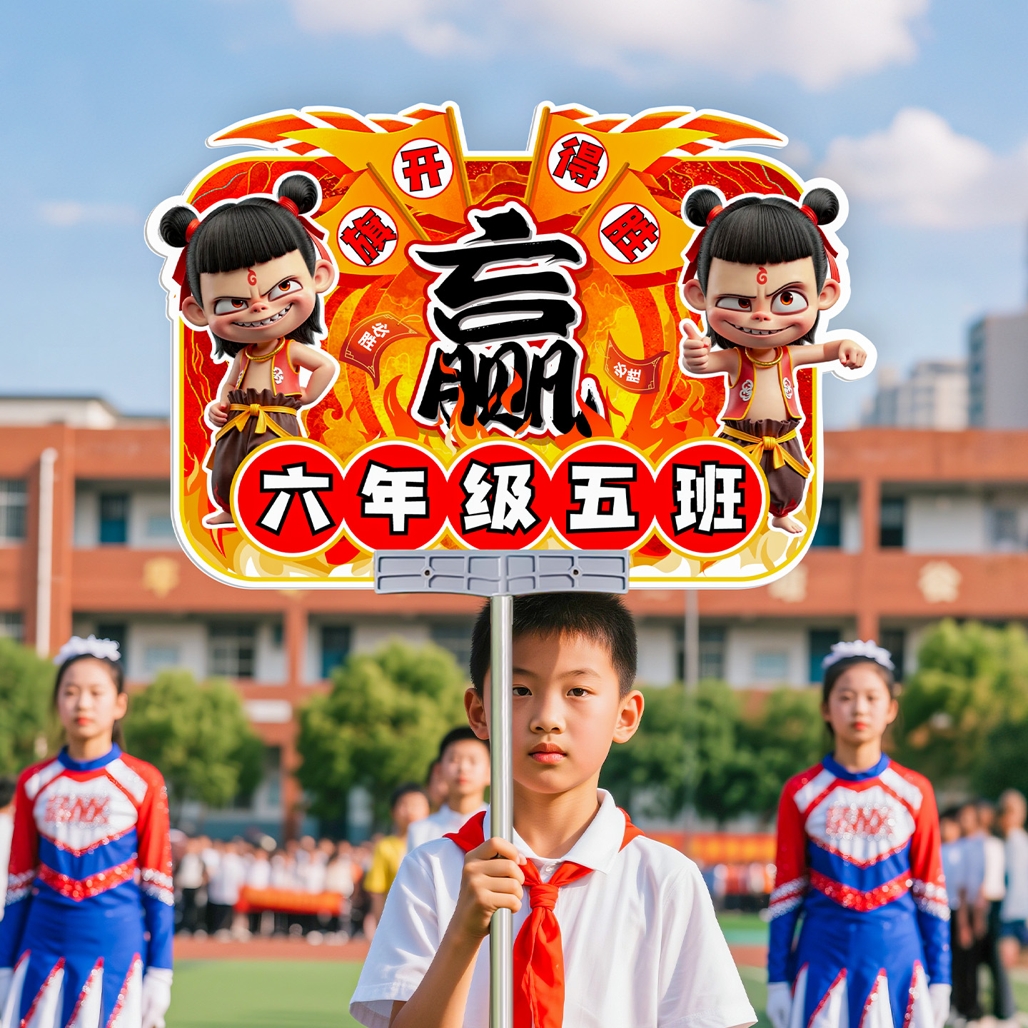 运动会班牌哪吒手举牌装 班级教室手举牌 饰品场景布置氛围开幕式