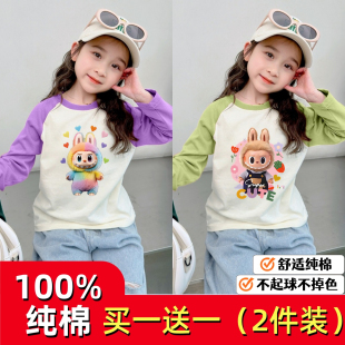 男童女童打底衫 T恤秋季 嘟嘟家儿童长袖 宝宝纯棉上衣童装 两件装