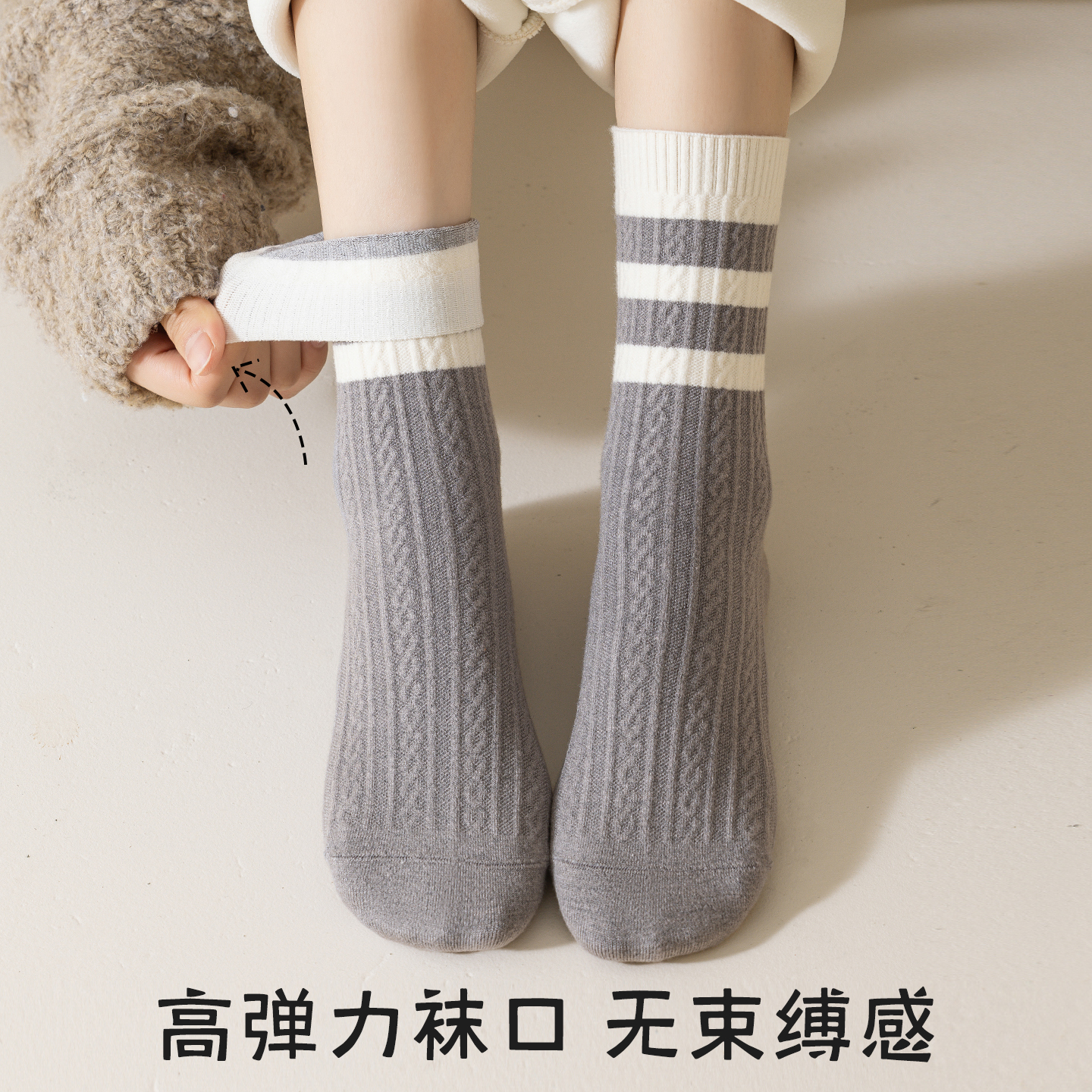 棕咖色月子长袜 乐福鞋 木耳边堆堆袜子女秋冬季 纯棉中筒袜配小皮鞋