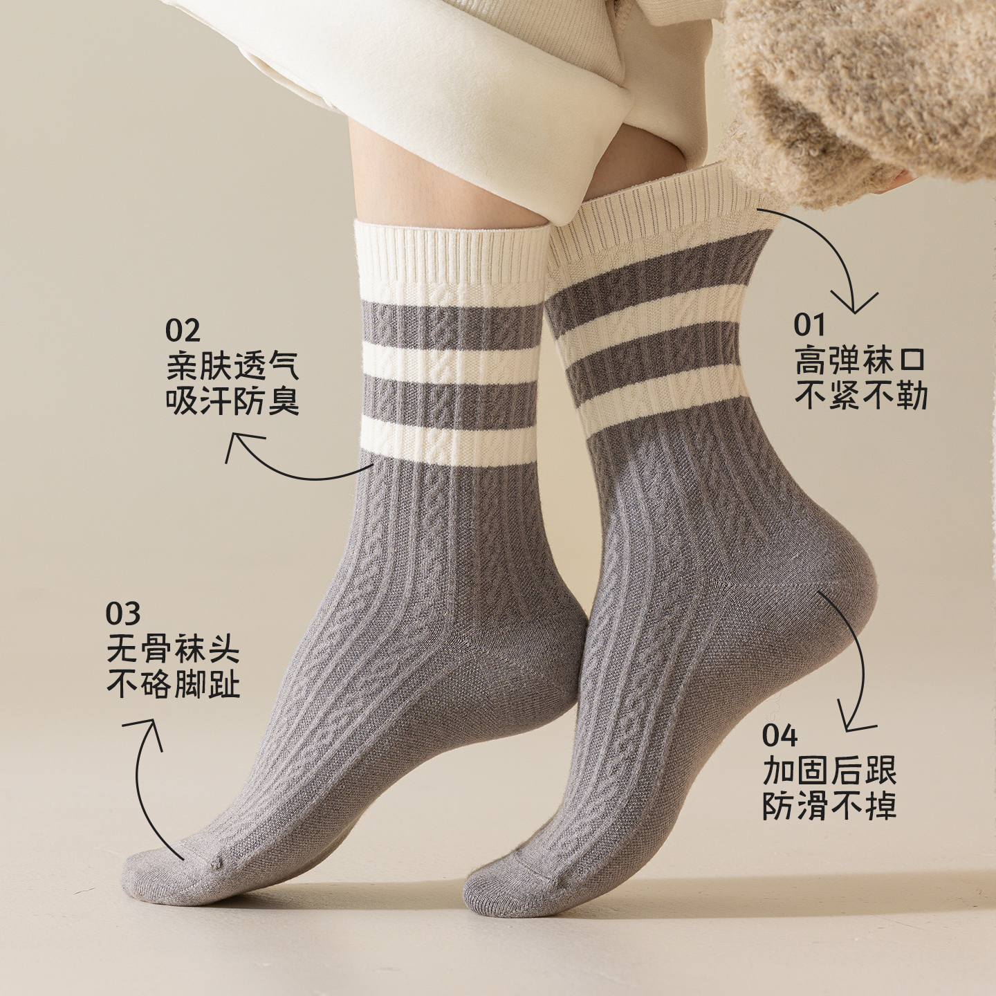 棉伙棉伴海藻袜舒适抗菌防臭男女商务运动纯色裸感中筒袜