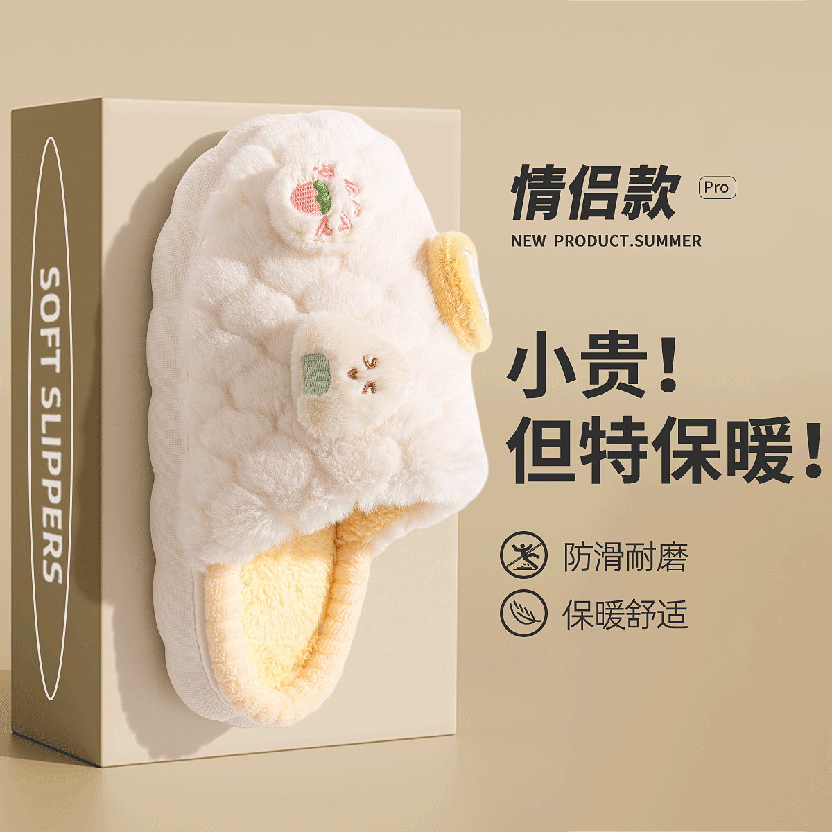 可爱饭团棉拖鞋 室内家居防滑保暖毛毛绒棉拖男冬 女士秋冬2025新款