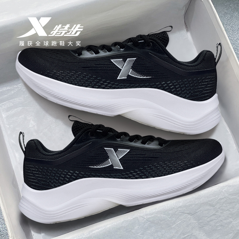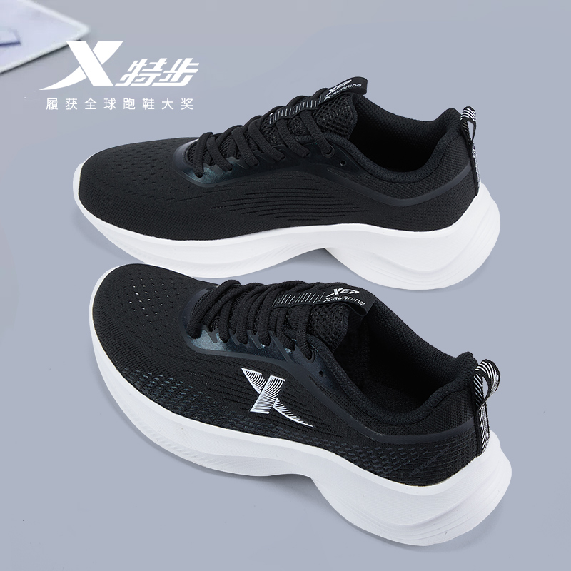 跑步鞋 秋季 女轻便减震软底女学生初中生 女2025新款 特步黑色运动鞋