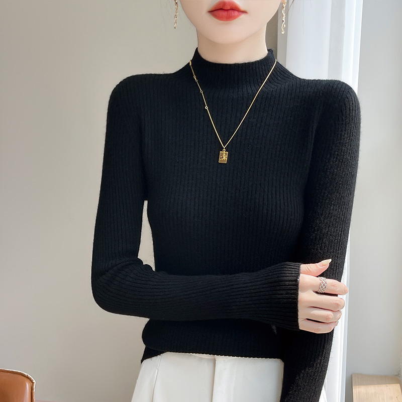 木耳边弹力针织打底衫 毛衣女修身 上衣潮 秋冬半高领长袖 2025年新款