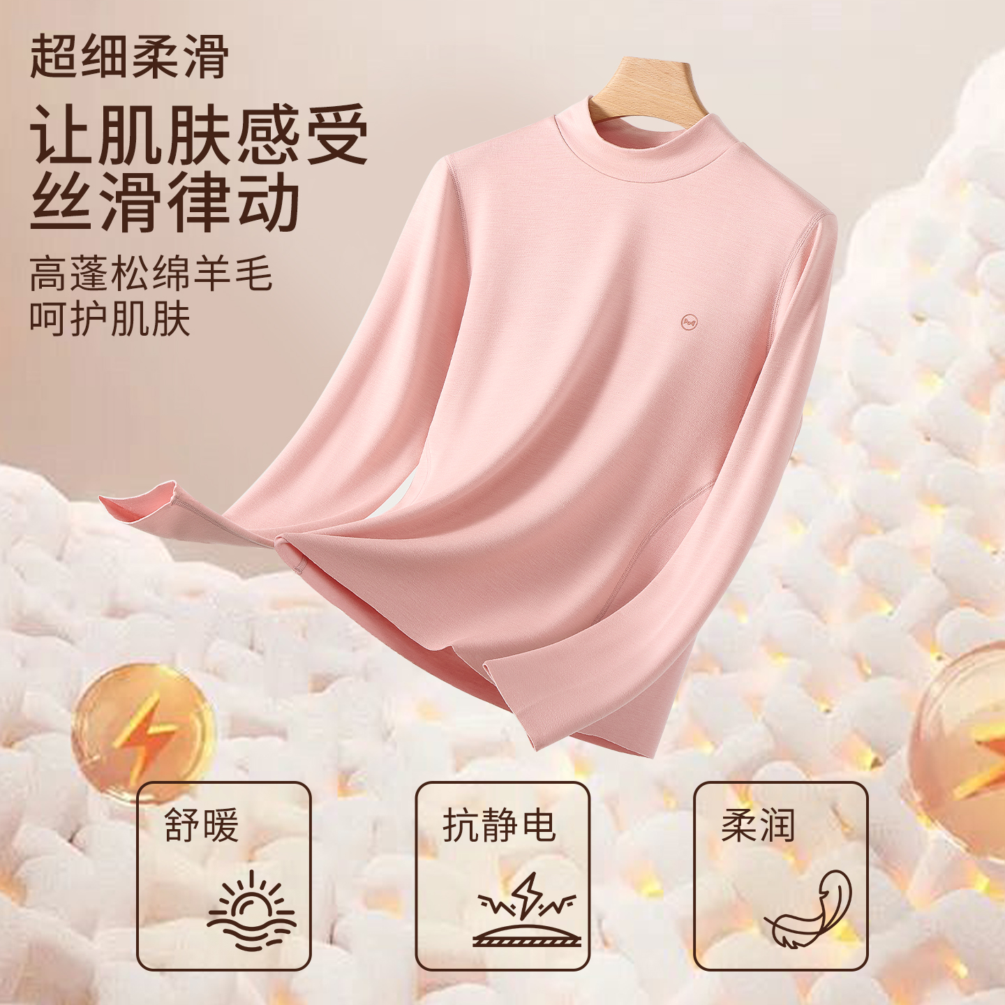 猫人女士半高领保暖内衣2025新款 加绒德绒发热打底内搭上衣 秋冬季