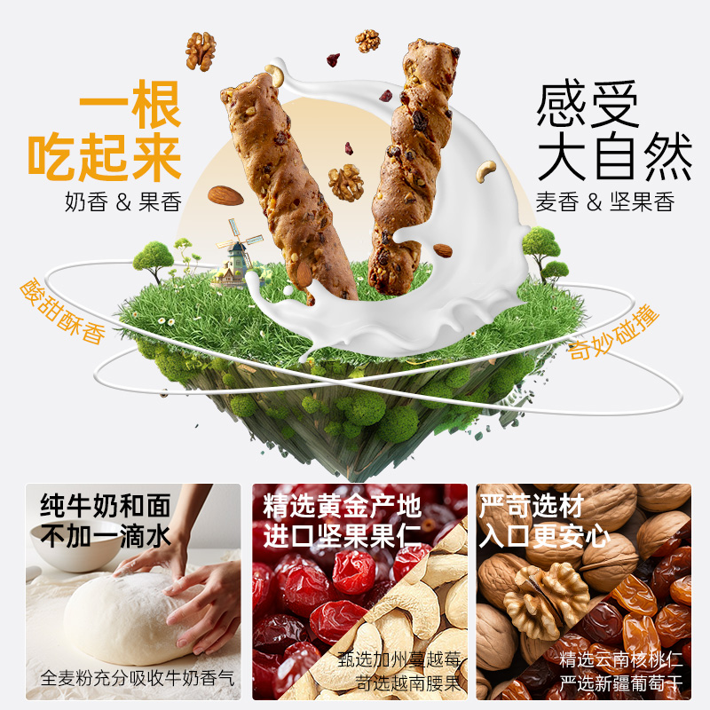全麦蜂蜜坚果棒手撕面包棒整箱代餐饱腹健康休闲零食官方旗舰店