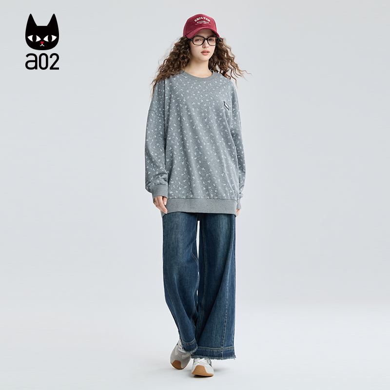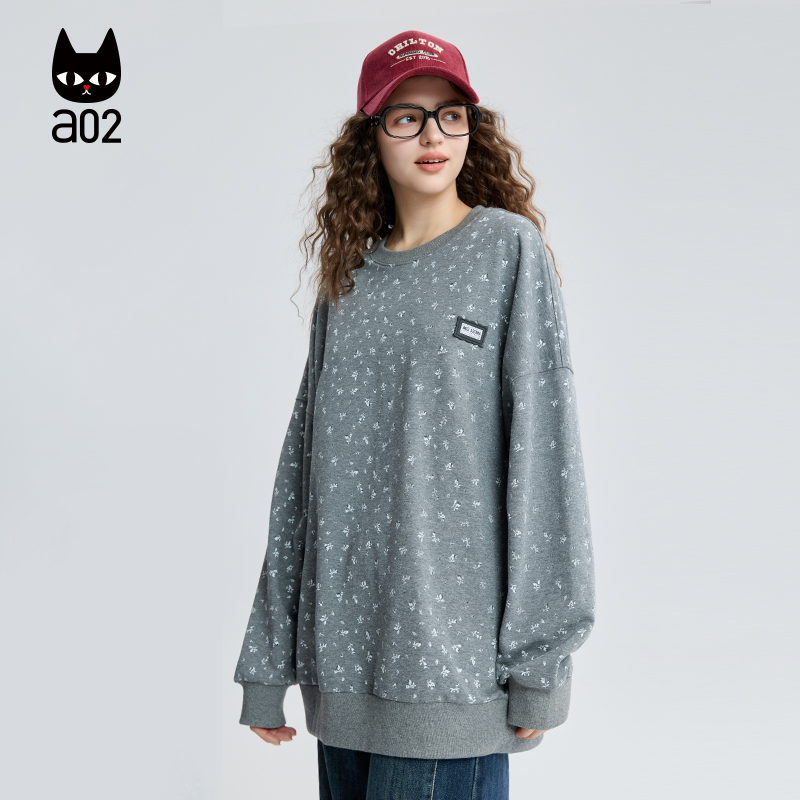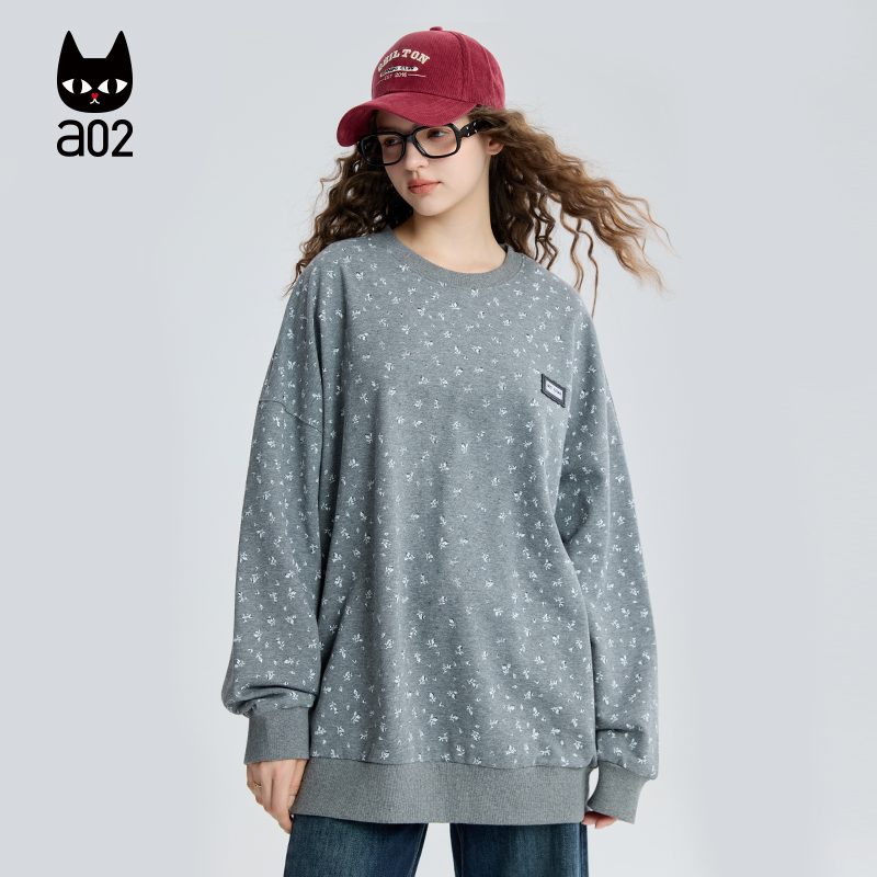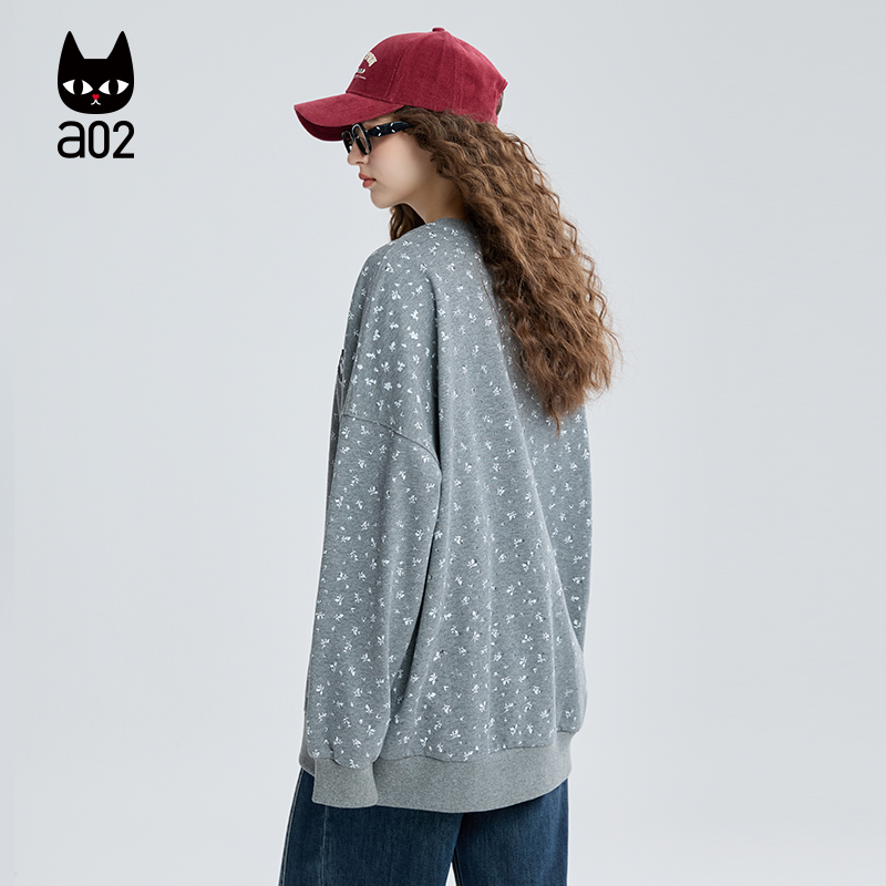 a02清新碎花圆领宽松卫衣女2025新款 慵懒松弛感通勤早秋上衣 秋季