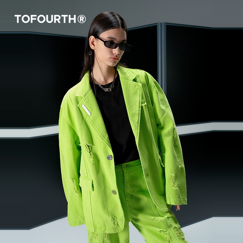 外套套装 TOFOURTH 破洞设计宽松格林森绿西装 商场同款 明星同款