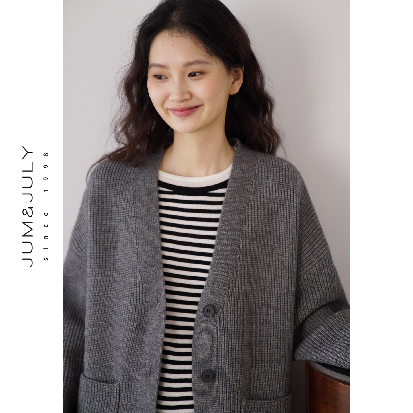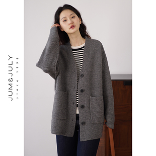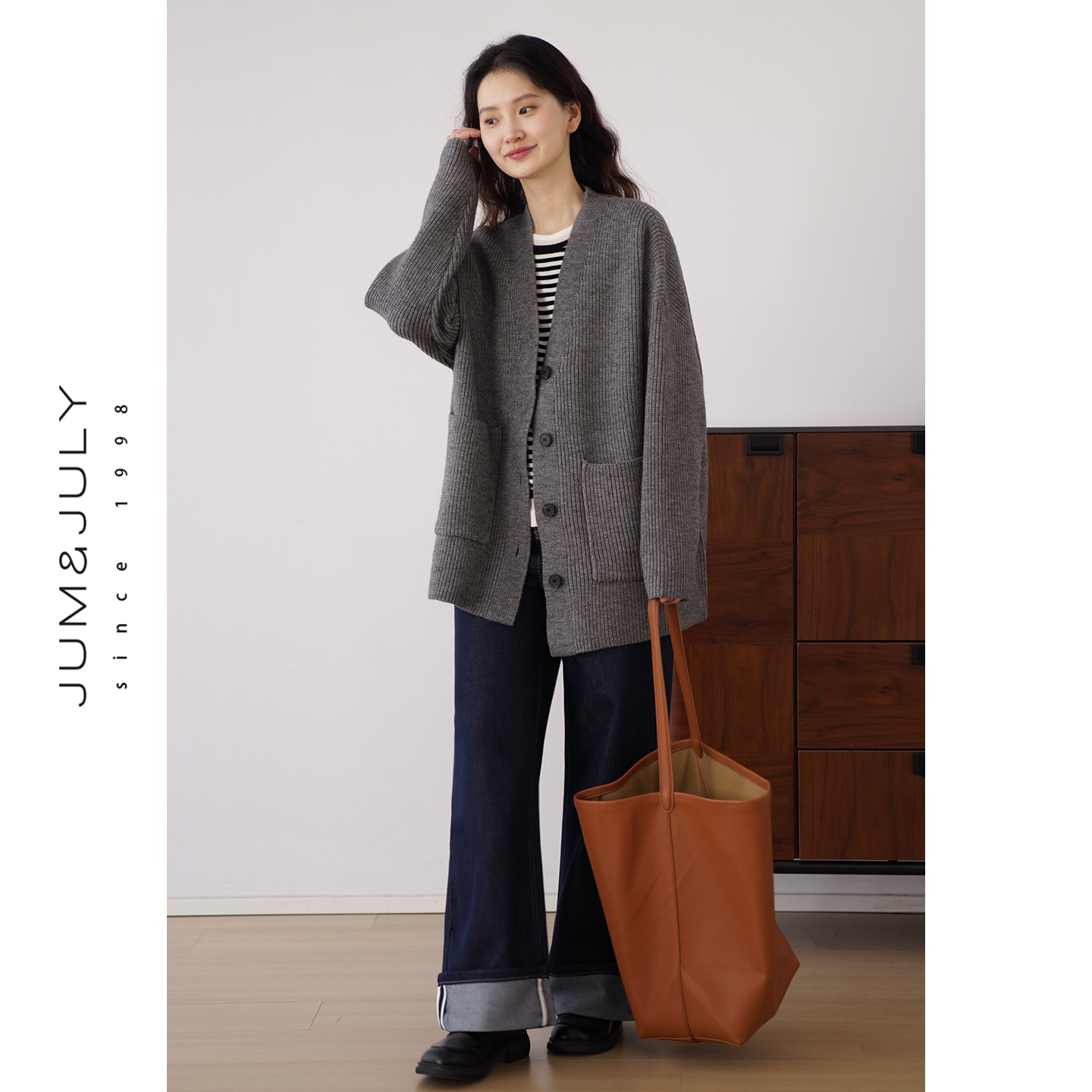 刺绣撞色纽扣宽松外套上衣女装 秋季 505896 女2025新款 三福毛衣开衫