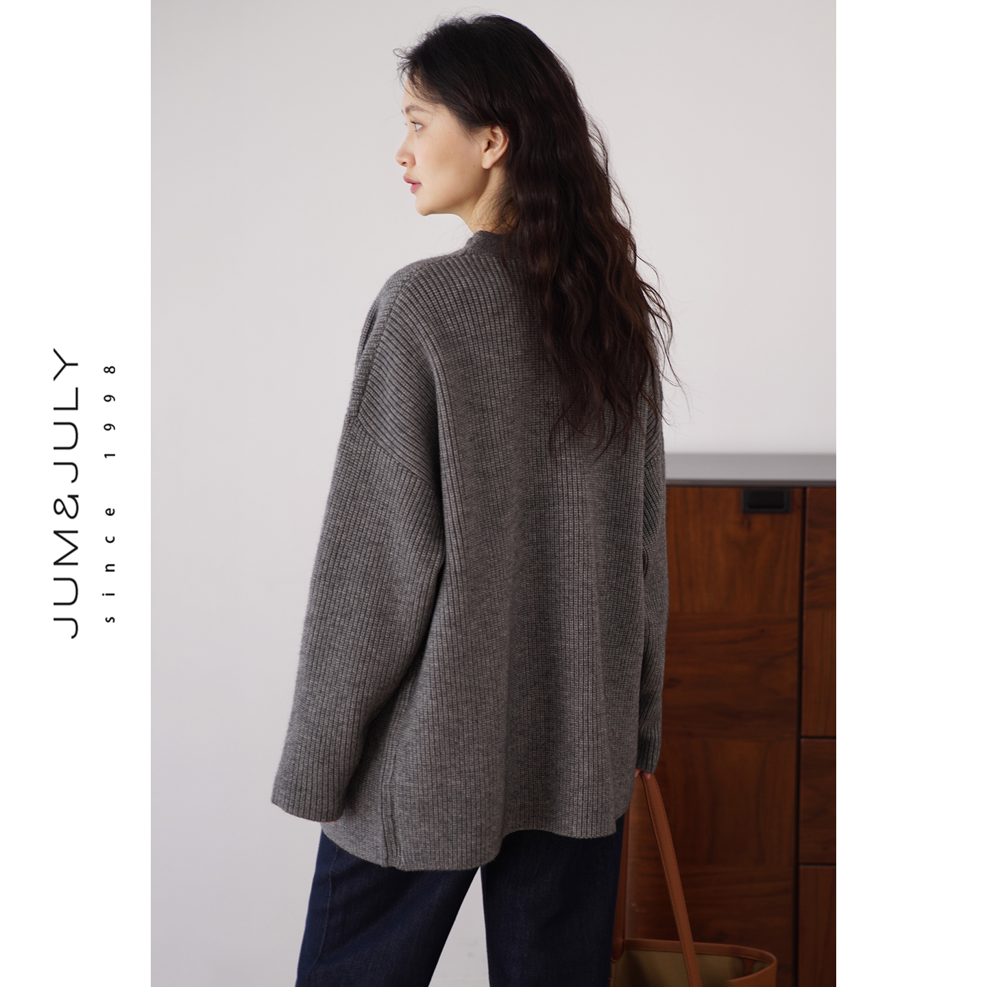 三福毛衣秋冬慵懒高级感2025新款 510472 蘑菇图案V领宽松上衣女装