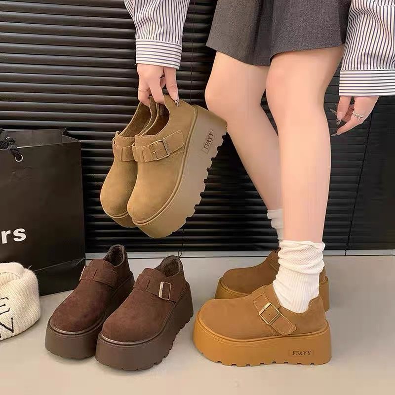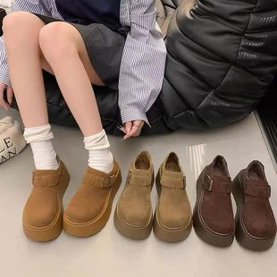 保暖加绒面包鞋 防水短筒增高棉鞋 新款 松糕厚底雪地靴女2025年冬季