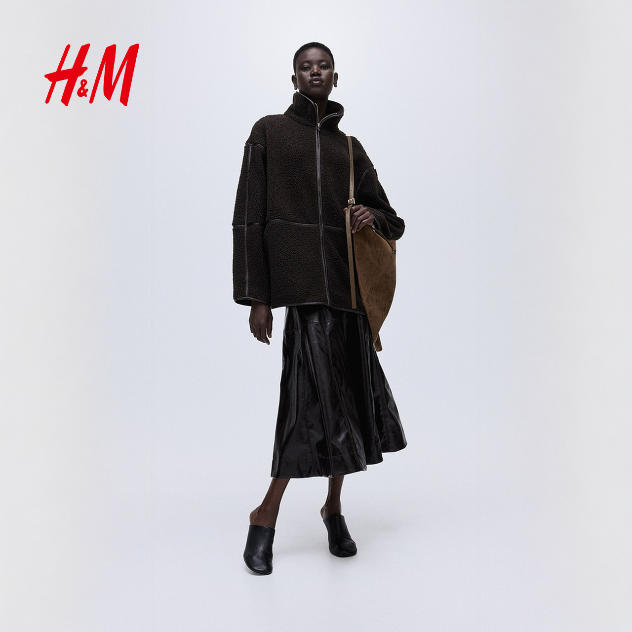 高领泰迪绒拉链宽松保暖外套1308812 新款 HM女装 短外套2025秋季