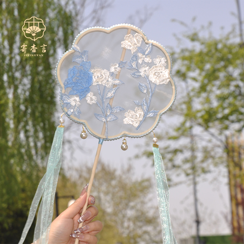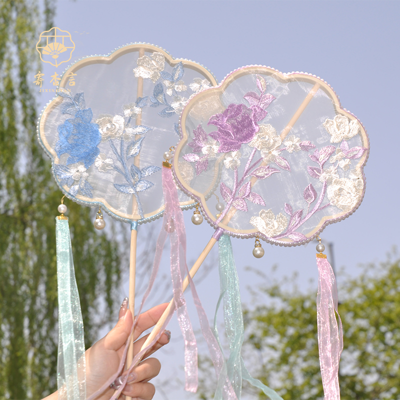 团购跳舞古风团扇手工刺绣流苏飘带圆形扇汉服舞蹈扇儿童跳舞扇子