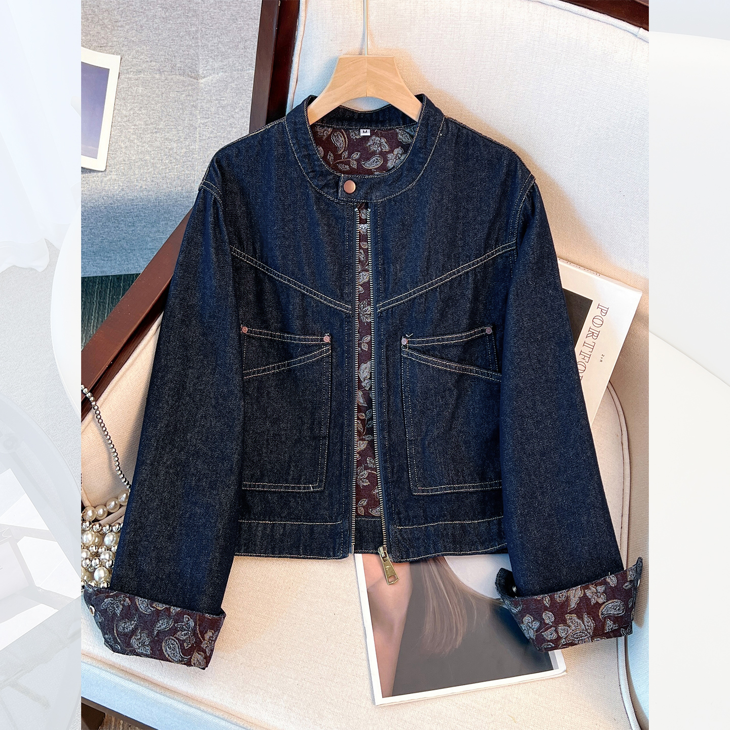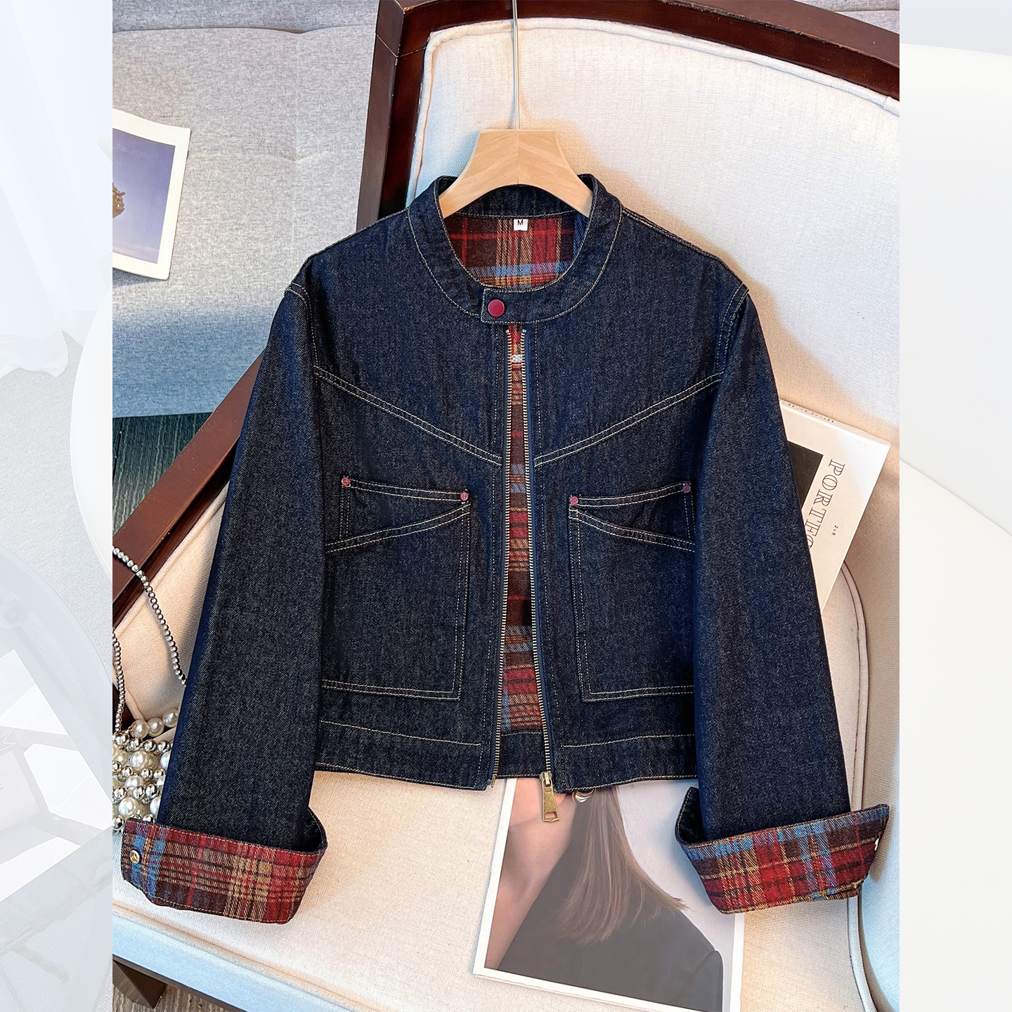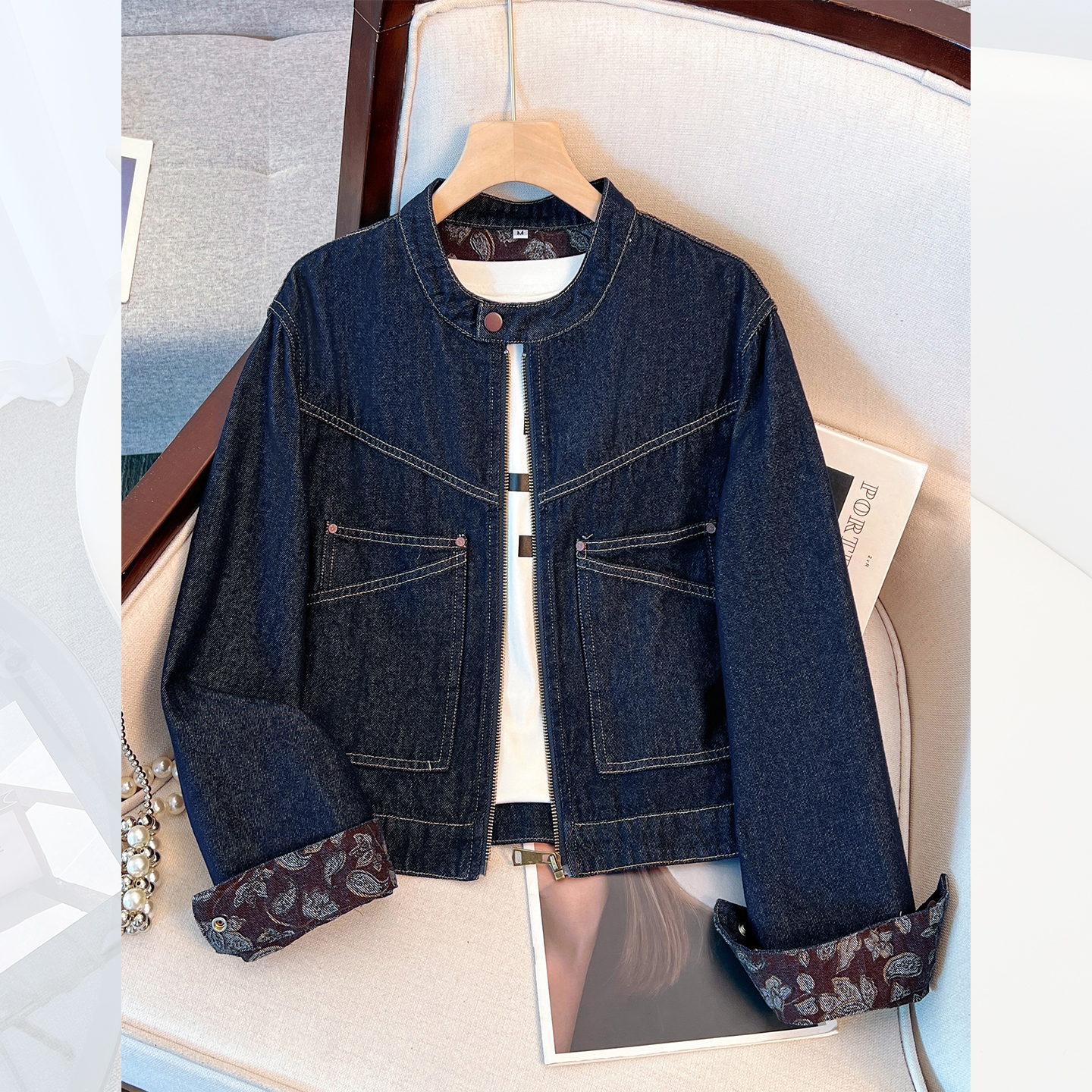 新款 2025早春秋季 圆领夹克 丹宁深蓝色牛仔衣外套女短款 今年流行
