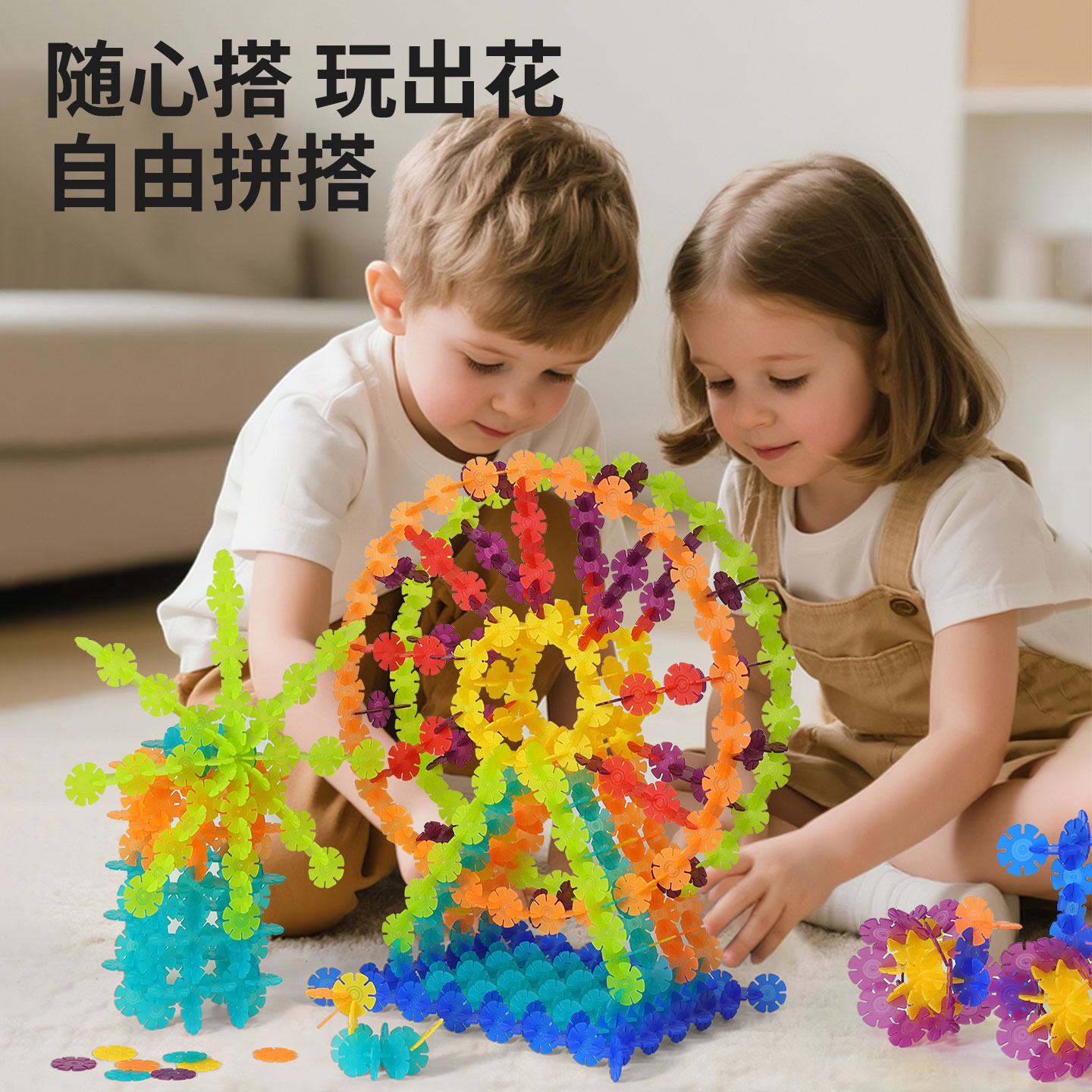 雪花片儿童益智玩具拼插积木0到3岁大颗粒加厚大号2岁宝宝1幼儿园