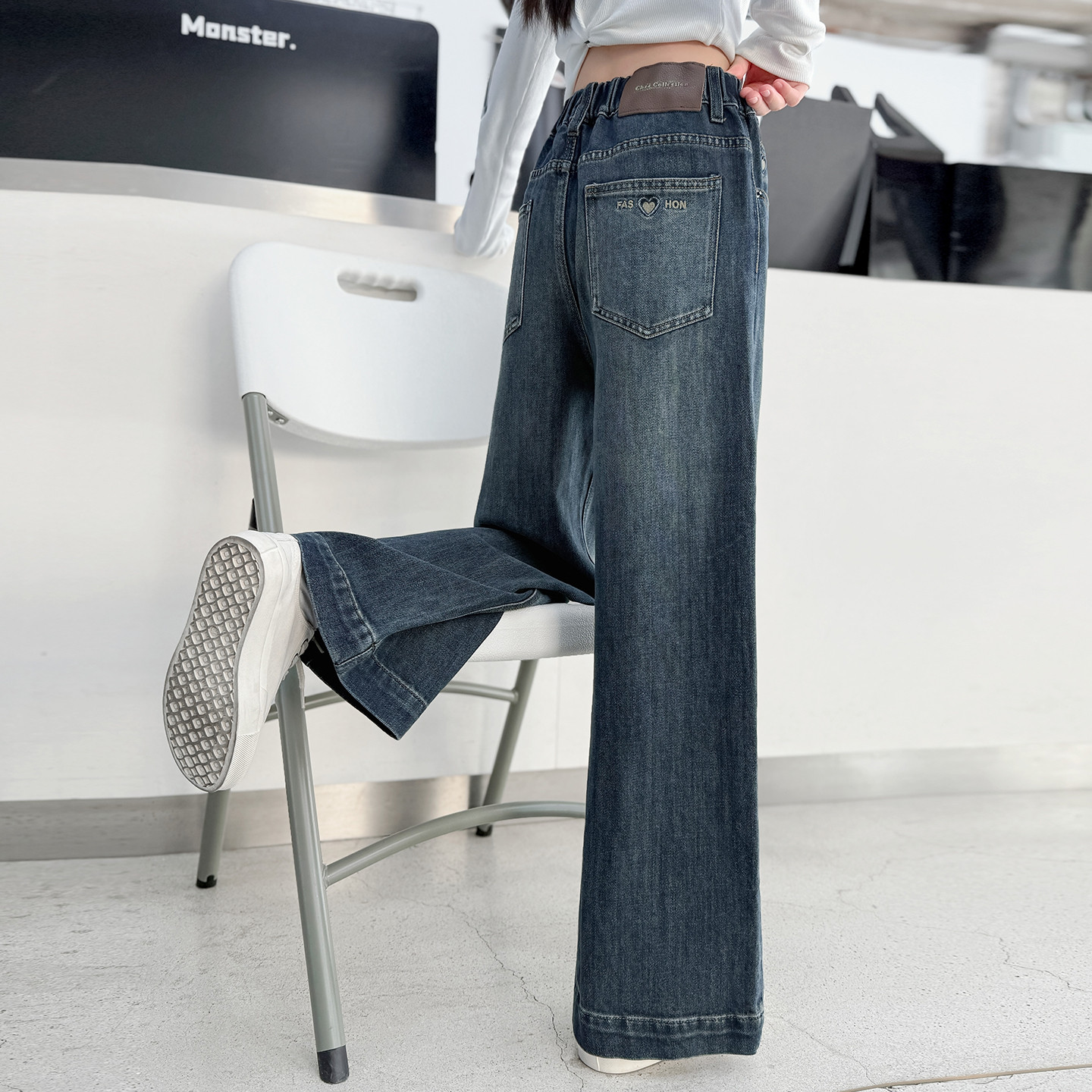 高腰宽松显瘦拖地直筒裤 复古垂感阔腿牛仔裤 美式 新款 子 女2025秋季