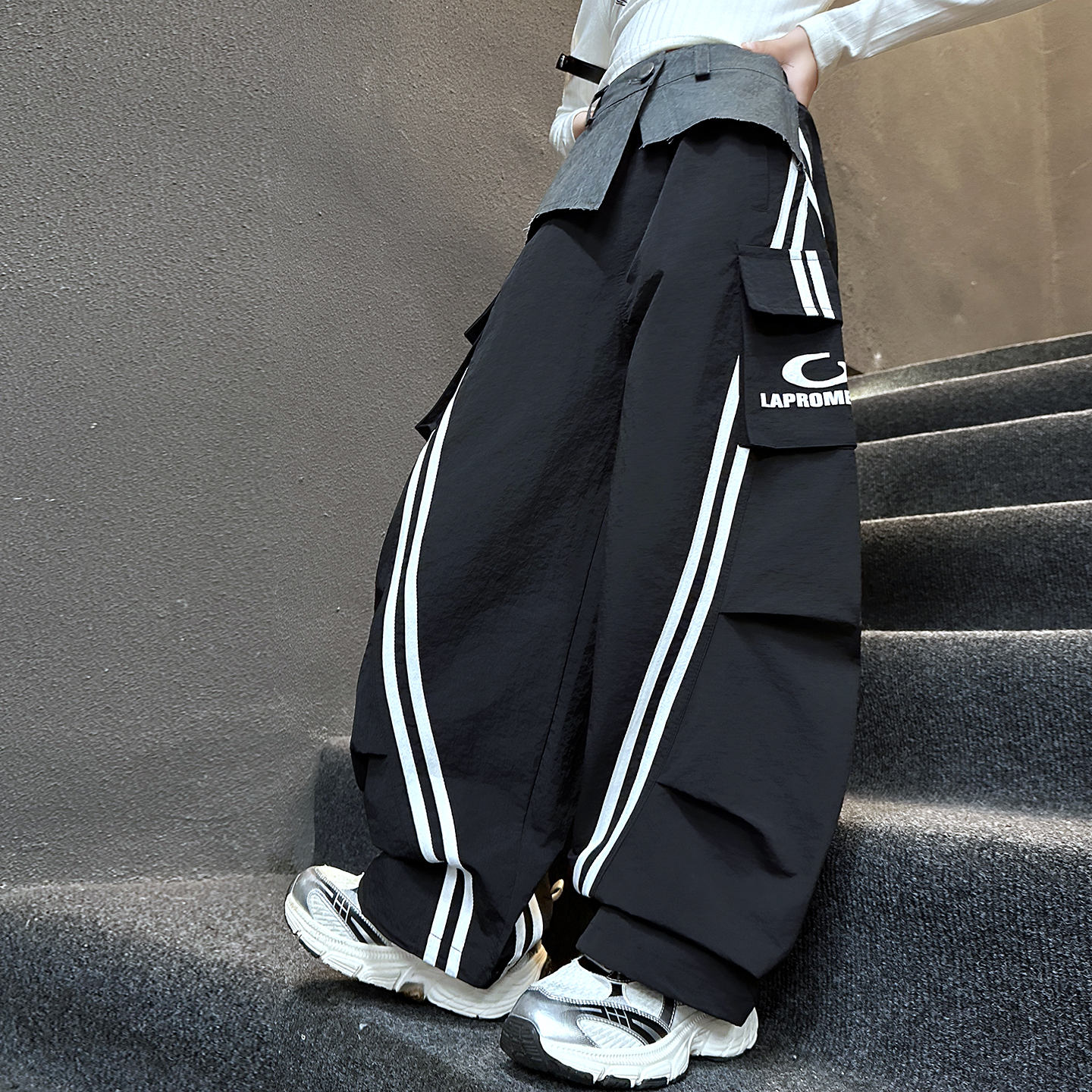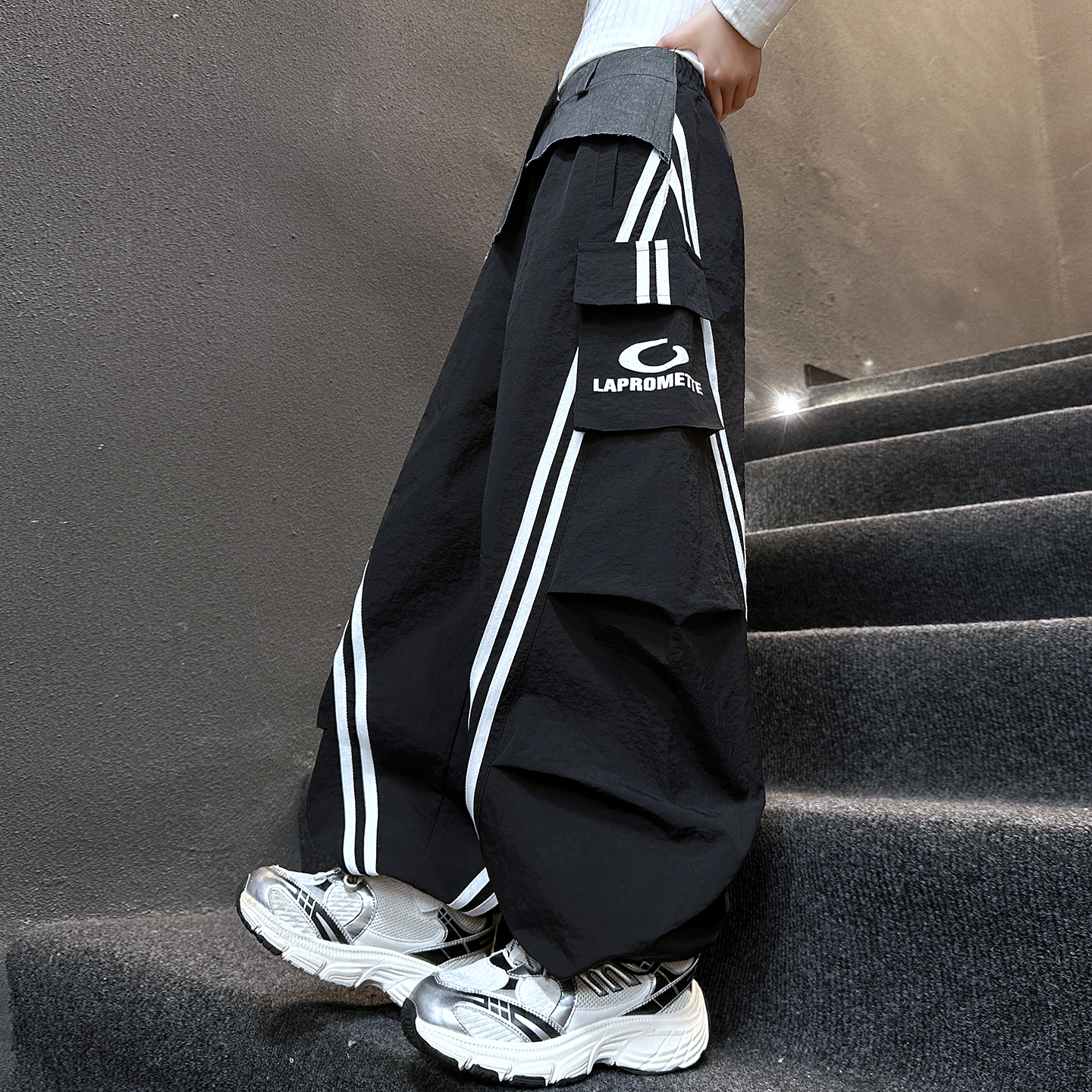 百搭宽松休闲哈伦裤 2025秋冬新款 子 女条纹拼接束脚运动裤 欧货卫裤