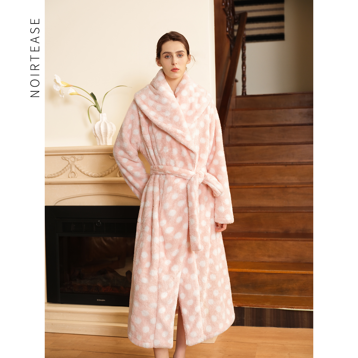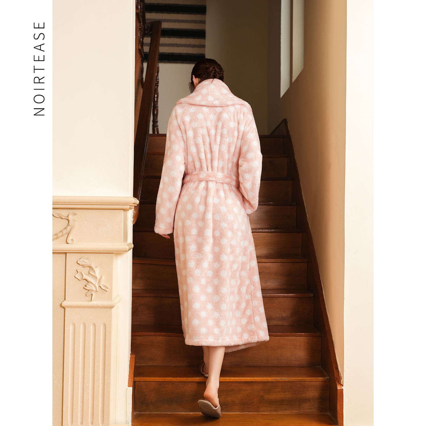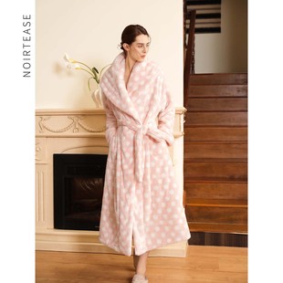 NoirTease冬季 保暖珊瑚绒系带家居服可外穿 加绒加厚睡袍女士长款