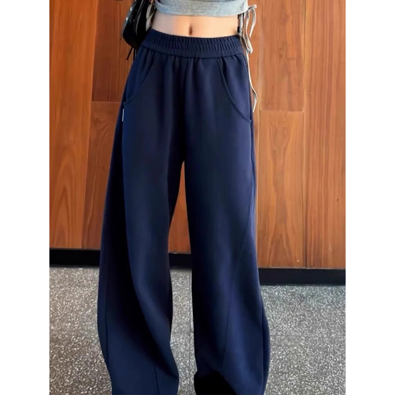 胖mm慵懒风松弛感加绒运动休闲裤 大码 女冬季 奶芙阔腿裤 子 黑色卫裤
