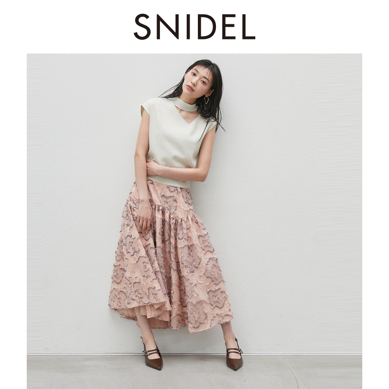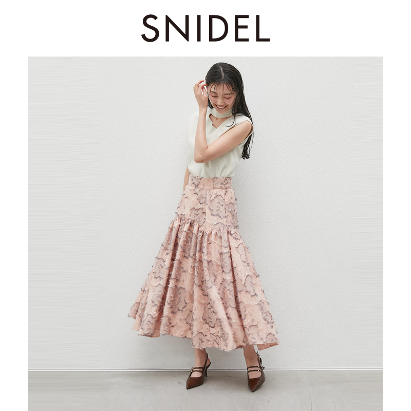 SNIDEL2025春夏新品 优雅高腰植绒提花A字半身裙伞裙SWFS252148