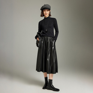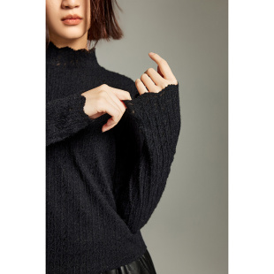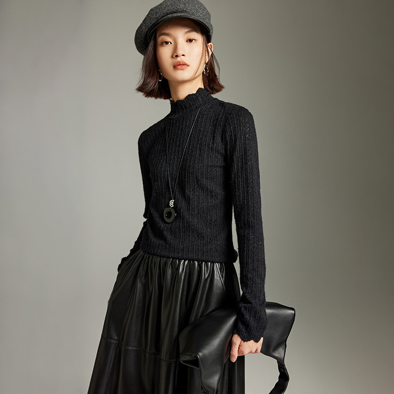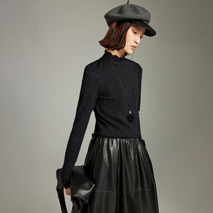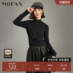 百搭高级感女式 女MOFAN摩凡2025冬新款 上衣 打底衫 黑色半高领修身