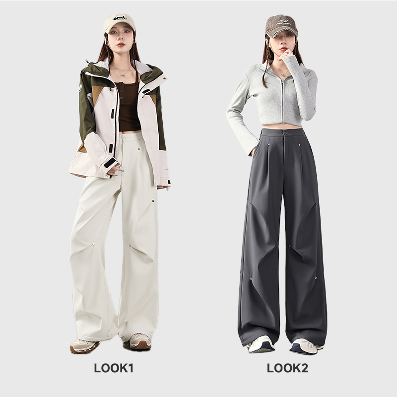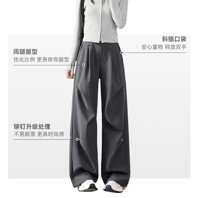 户外运动设计感伞兵裤 回力灰色加绒铆钉工装 新款 子女2025秋冬季 裤