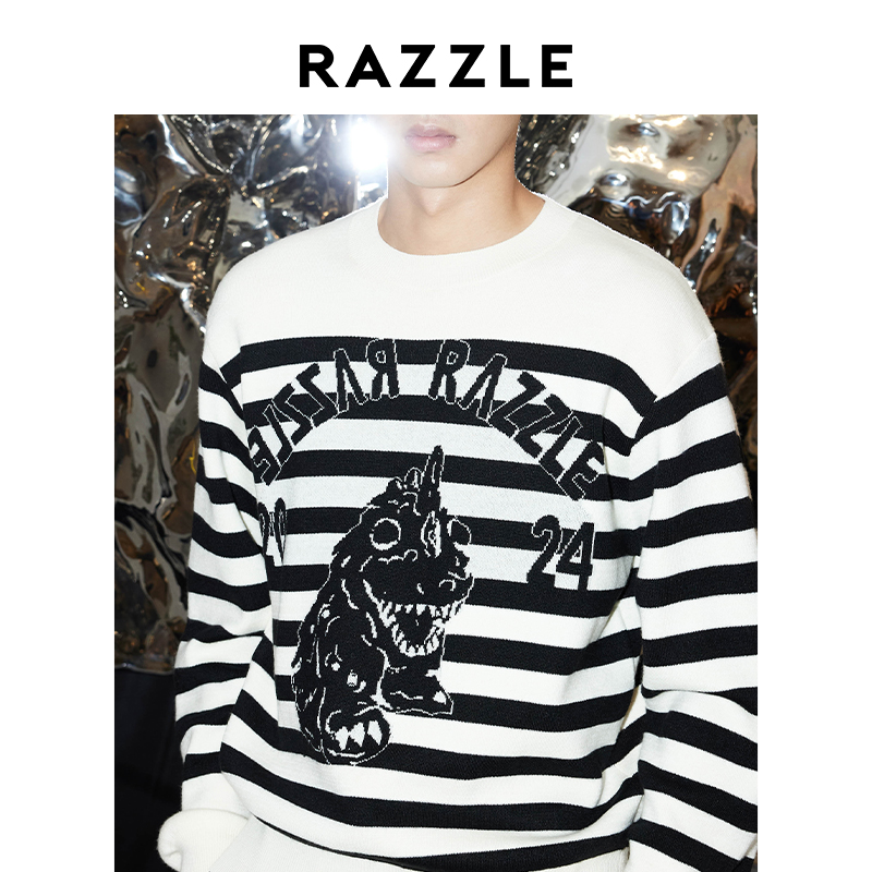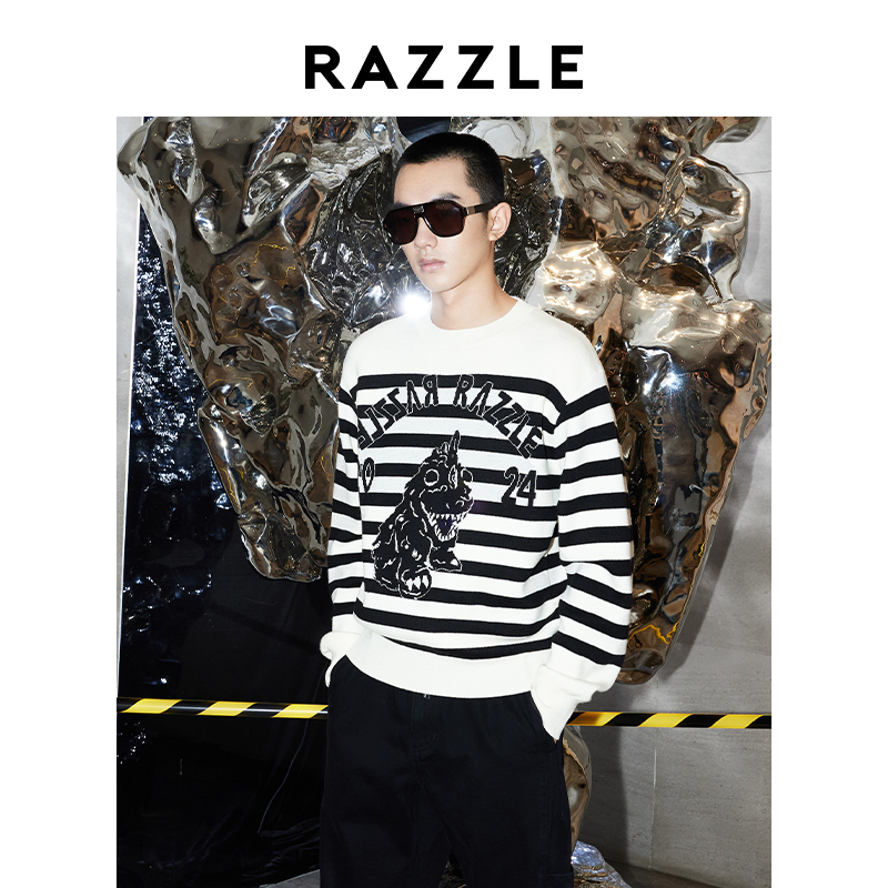 25秋新款 wowo熊猫圆领慵懒风针织衫 条纹毛衣男 海澜之家panda HLA