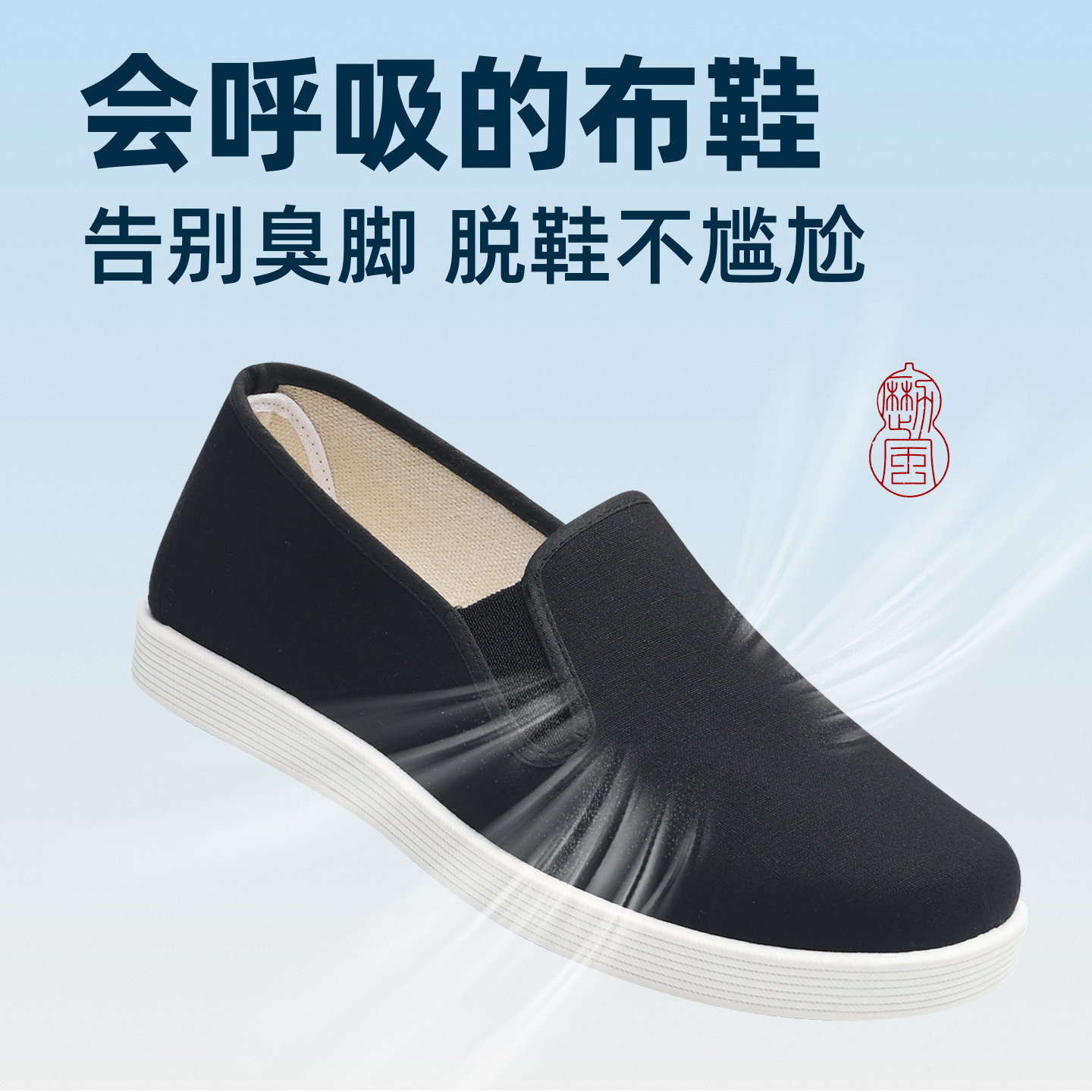 加米羊老北京布鞋 旗舰店官方 男春夏手工千层底透气休闲防滑黑布鞋