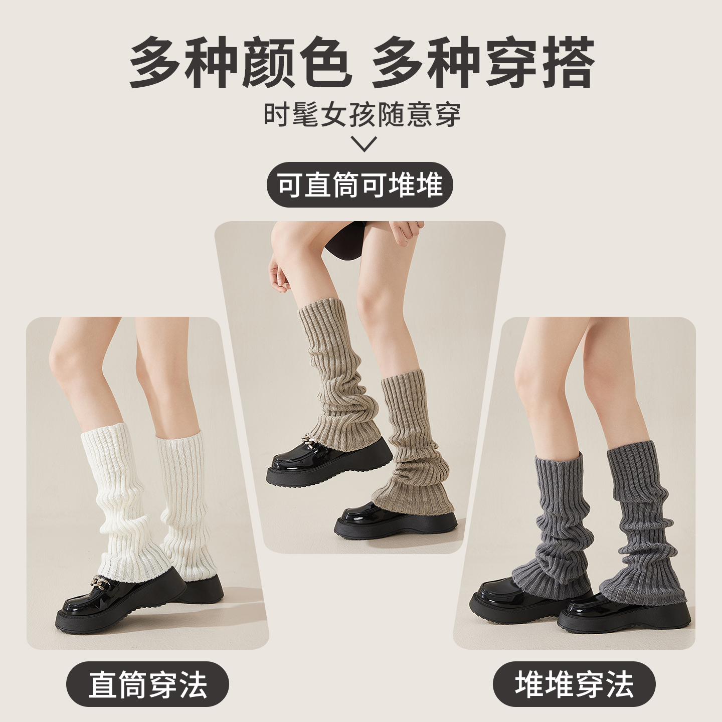 顶瓜瓜针织灰色袜套堆堆袜秋冬款 春秋腿套y2k显瘦长筒袜 配小皮鞋