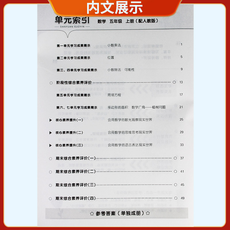 山东教育出版 六三制 社 小学同步练习册分层指导数学五年级上册附课时索引参考答案配人教版 2025秋新版