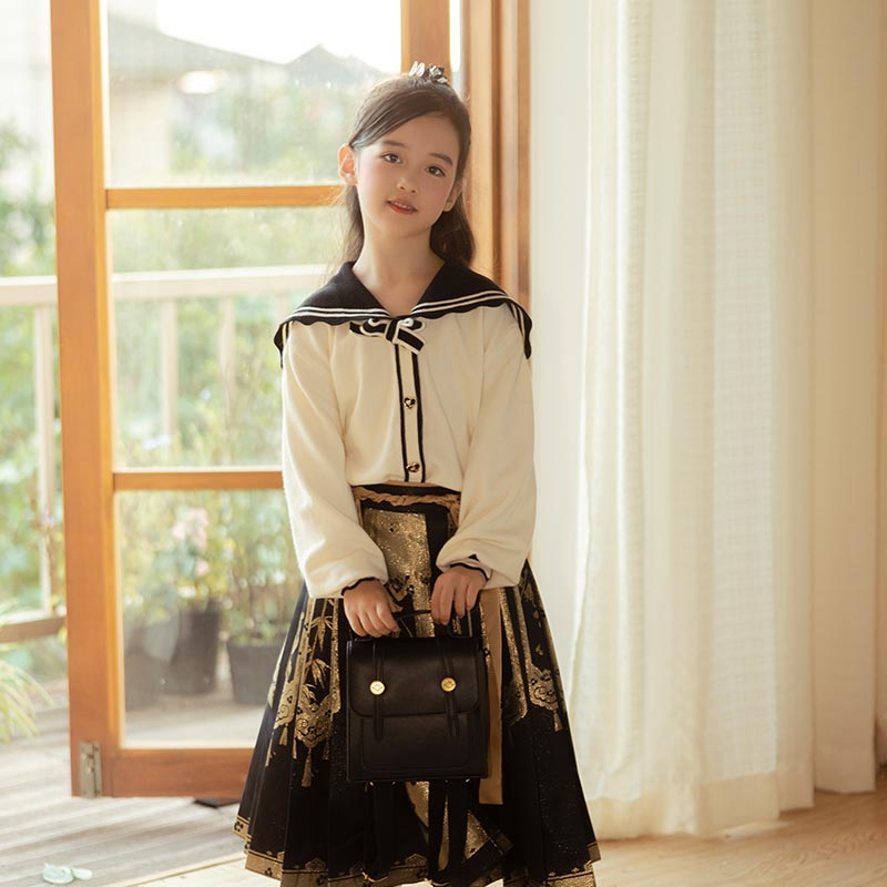 马面裙学院 国风汉服女童春秋款 十三余童装 蝶舞星落