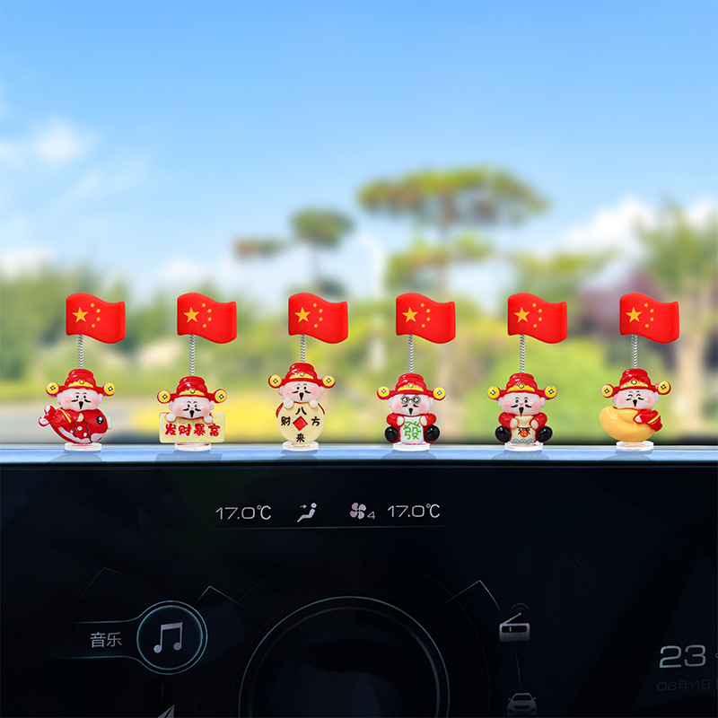 超萌爱国财神国旗汽车摆件电动车内饰中控台大屏办公位车载装 饰品