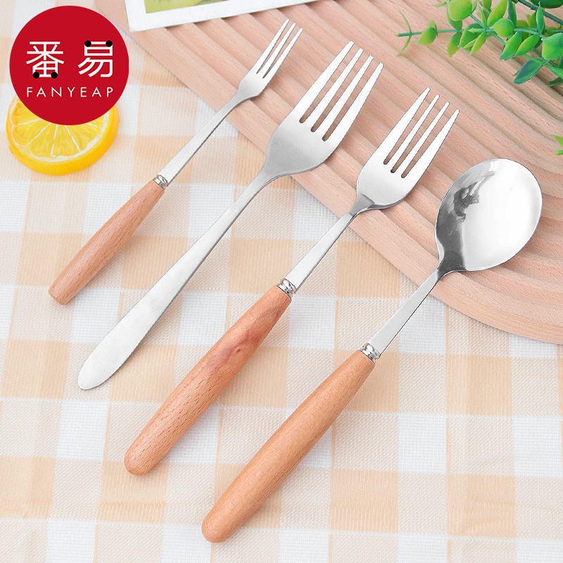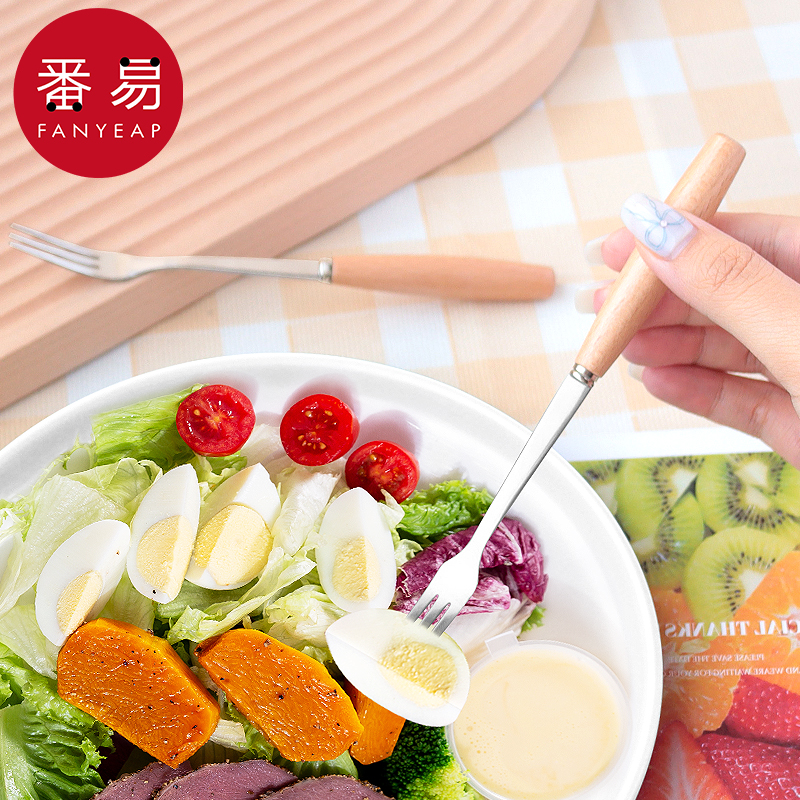 餐叉 西餐叉勺子家用长柄叉子不锈钢餐具叉勺木柄 木柄A1pf0