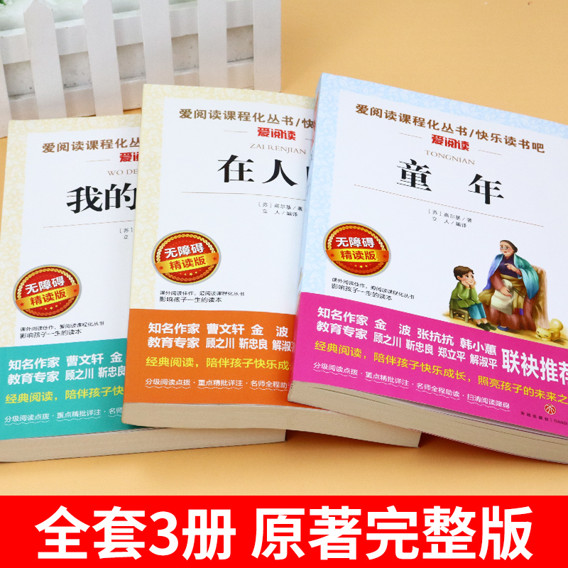 小学生六年级上册必读正版 大学高尔基三部曲原著完整版 课外书6年级小升初课外阅读书籍名著畅销书排行榜K 童年在人间和我 全套3册