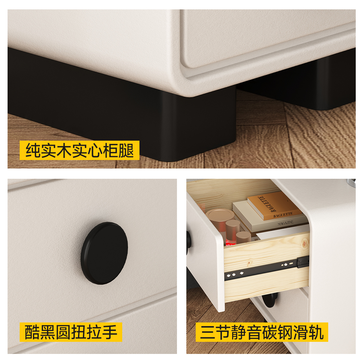 实木床头柜2025新款 简约现代小型轻奢高级感奶油风卧室家用床边柜