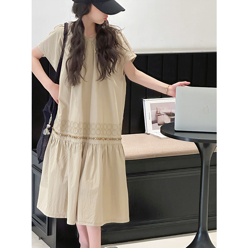 罗纹简约舒适短款 HM女装 宽松喇叭袖 新款 裙1268201 连衣裙2025秋季