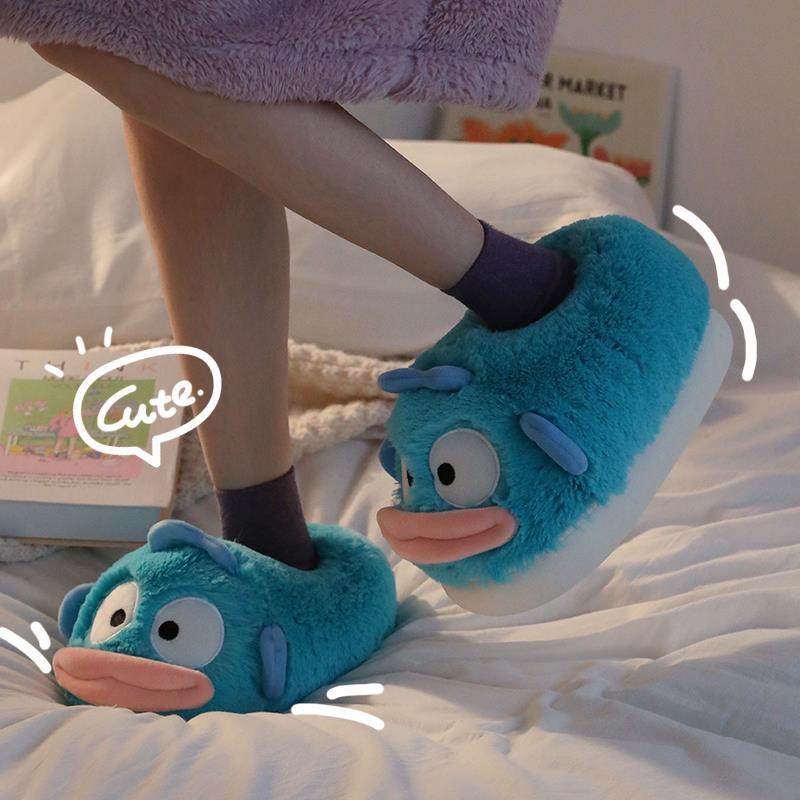毛绒棉鞋 2025新款 包跟拖鞋 女士冬季 室内居家用可爱情侣丑鱼 棉拖鞋