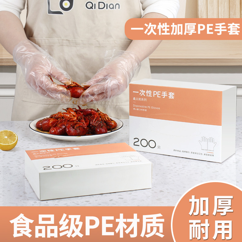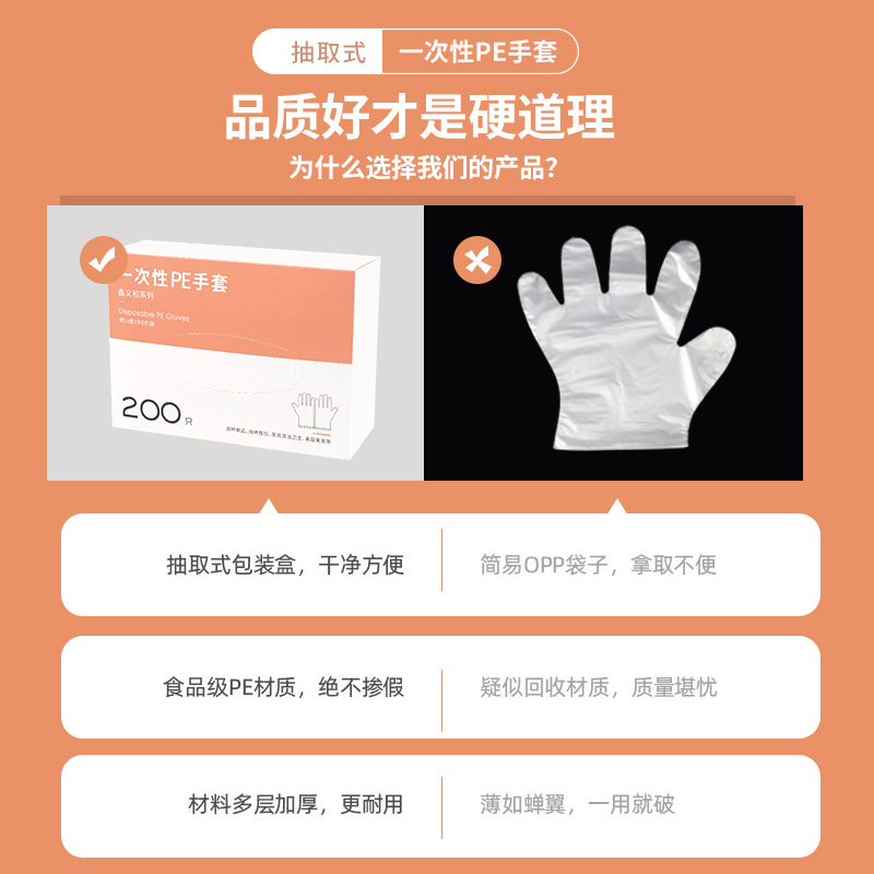一次性手套PE食品级餐饮专用加厚塑料薄膜厨房家用盒装 抽取式