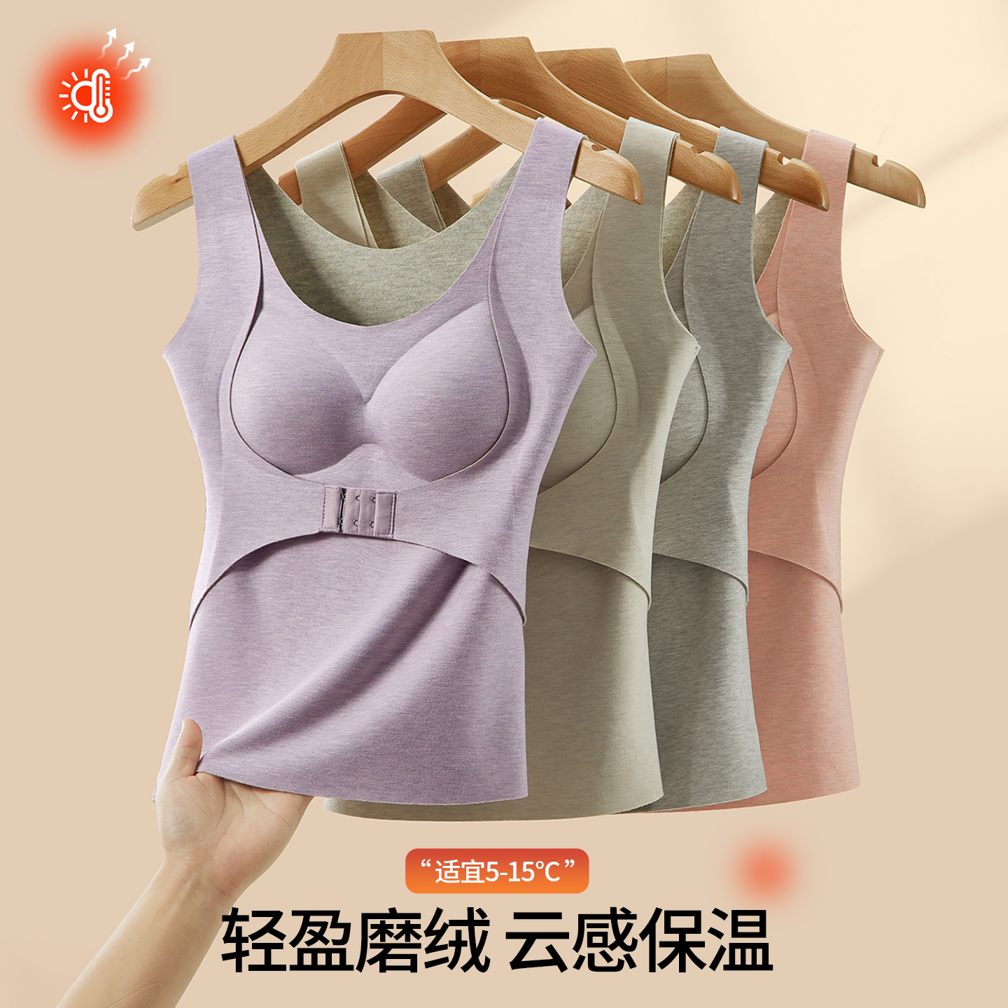 婷美免穿文胸羊毛蓄热保暖背心女修身 显瘦前扣塑形加绒加厚打底衫