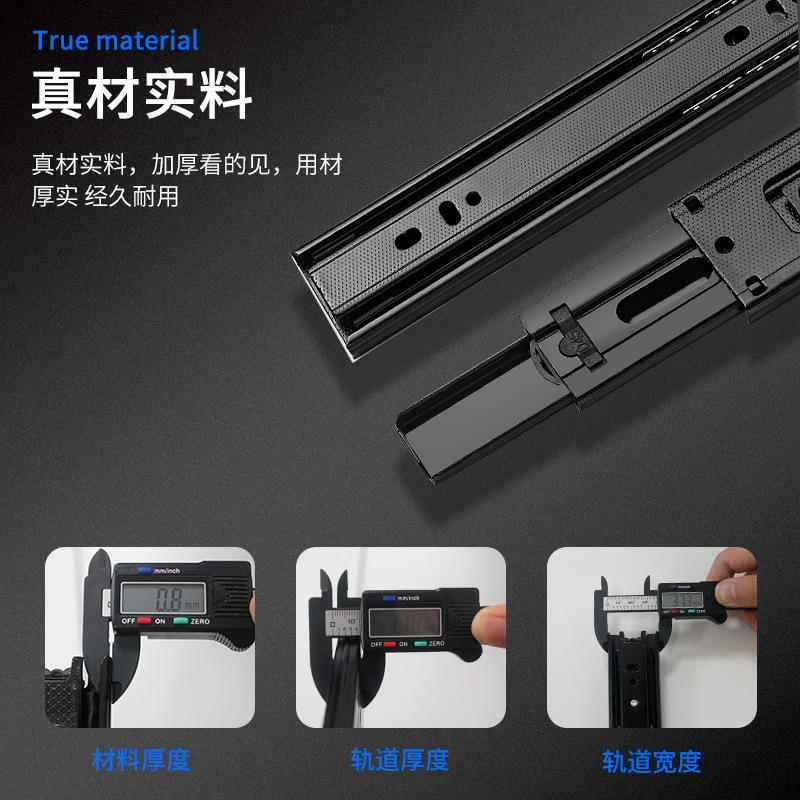 40宽加厚抽屉轨道静音钢珠滑轨橱柜衣柜液压三节轨侧装 导轨滑道