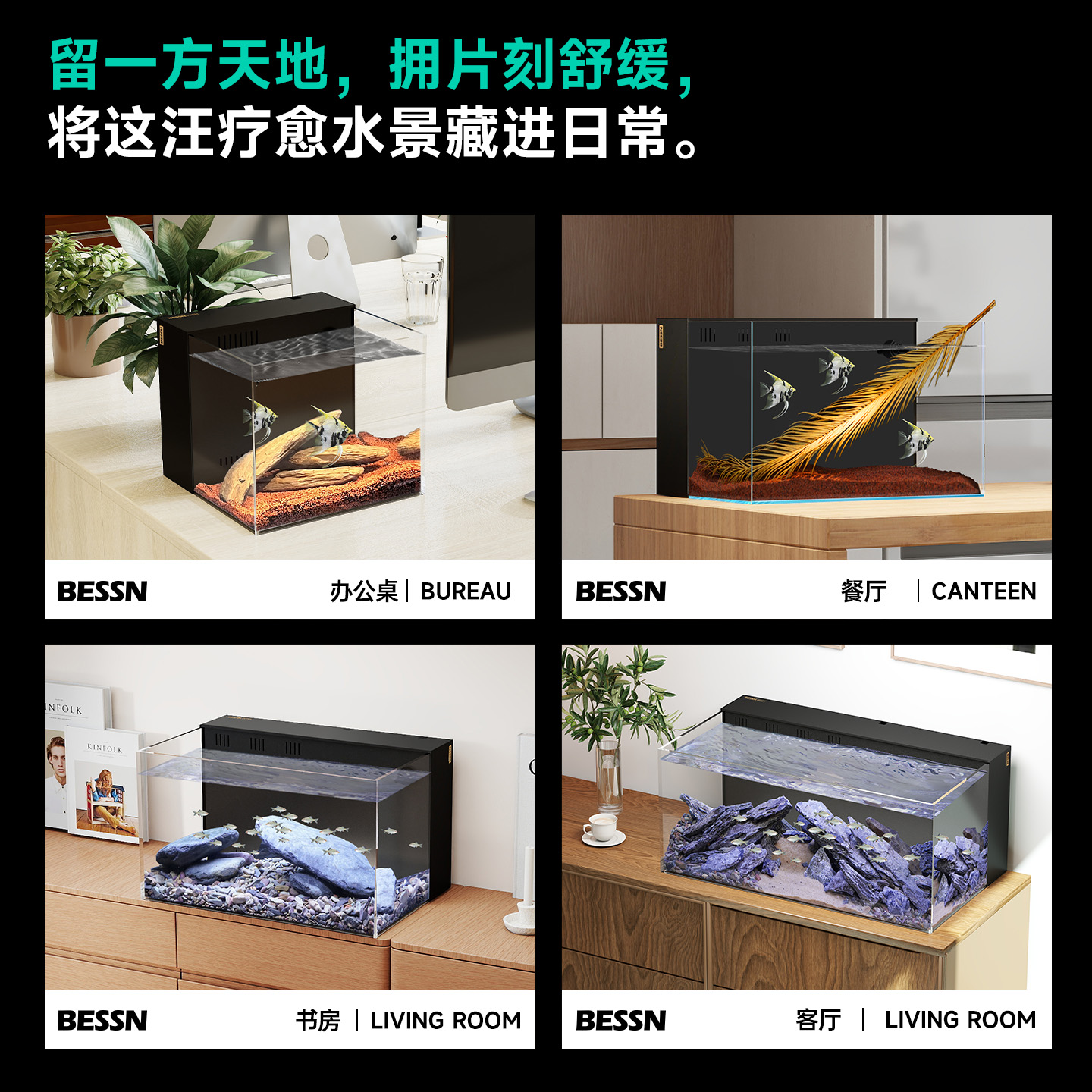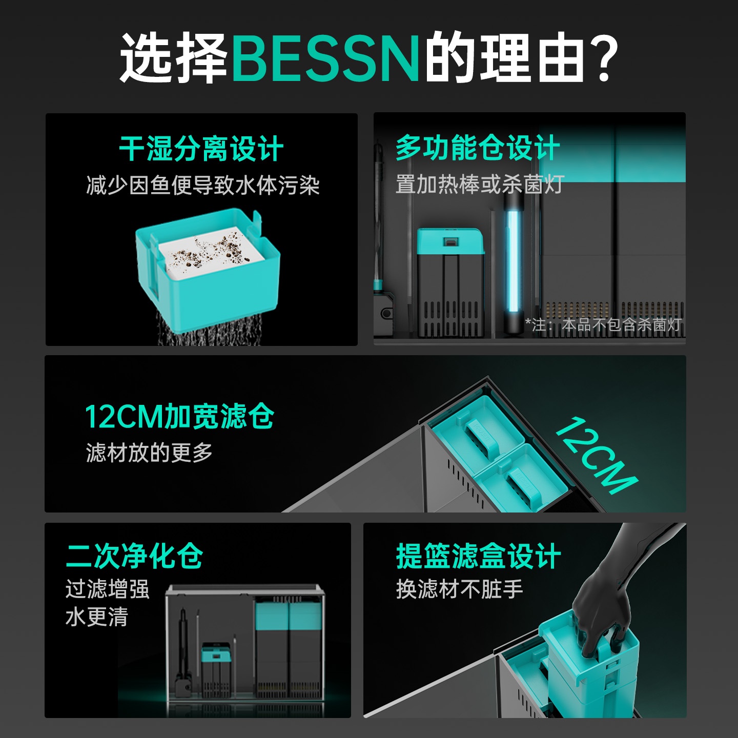 BESSN2025新款 背滤鱼缸客厅干湿分离多仓精滤贝森金晶五线超白缸