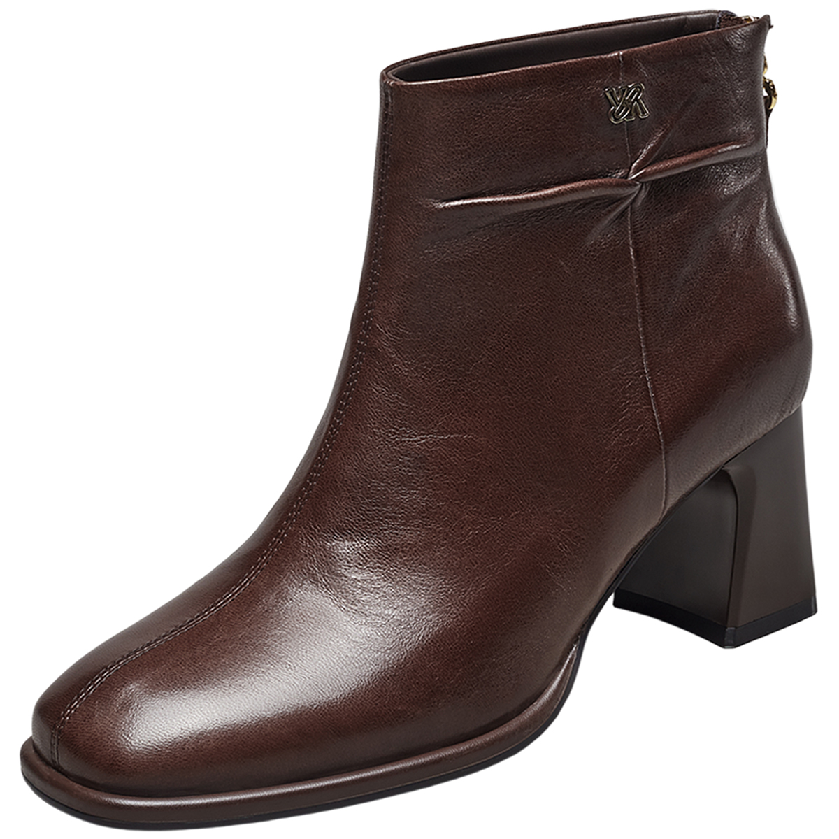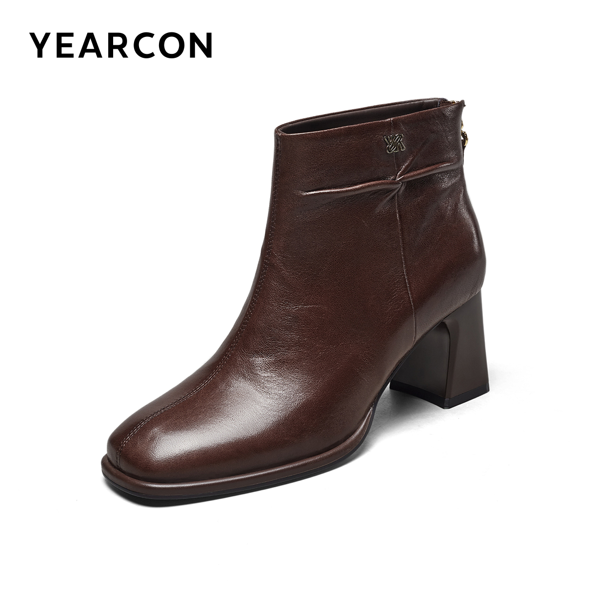 短靴粗跟气质显瘦单靴及踝靴女士皮鞋 真皮法式 2025冬季 意尔康女鞋