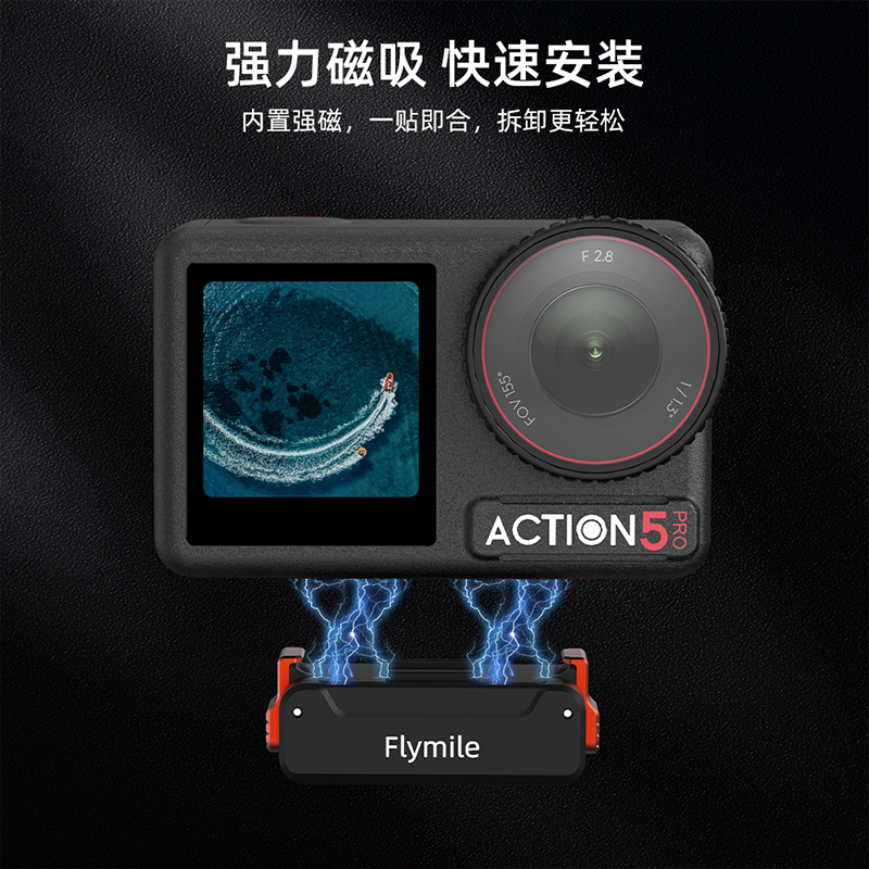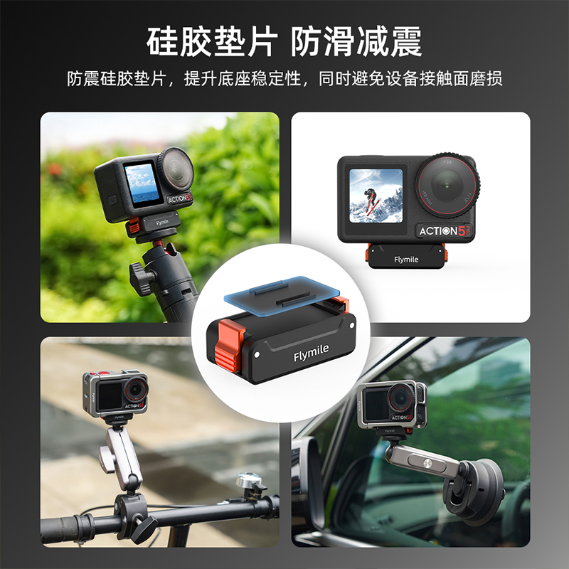 5Pro运动相机快拆转接件拓展底座1 大疆action4 4转接头配件 360磁吸快拆底座 Flymile适用于大疆Osmo