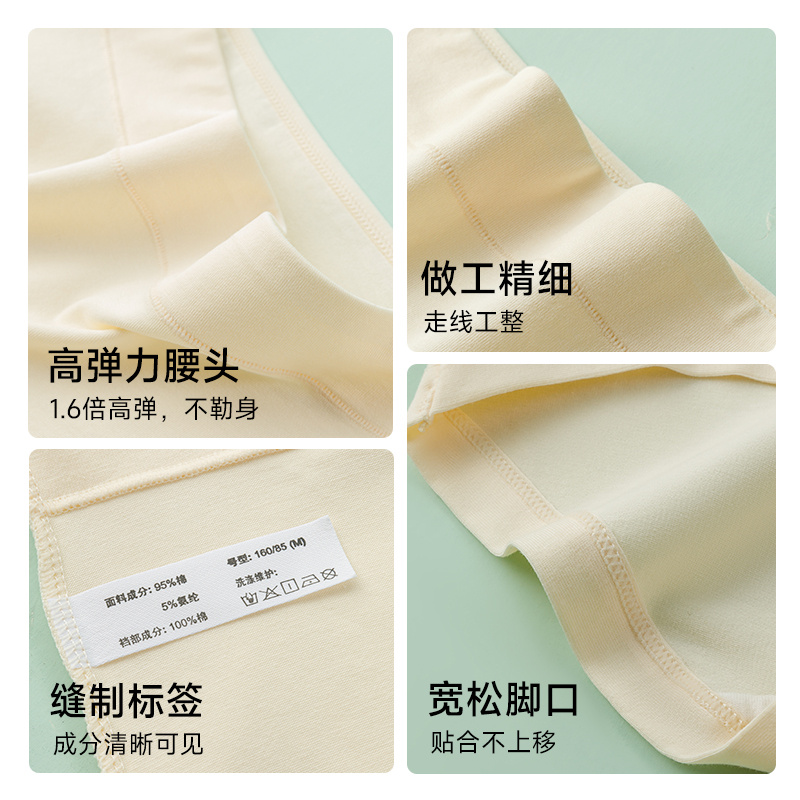 蕾丝女内裤 欧若风100A抑菌平角裤 礼盒装 加长裆包臀5条QV 立减50