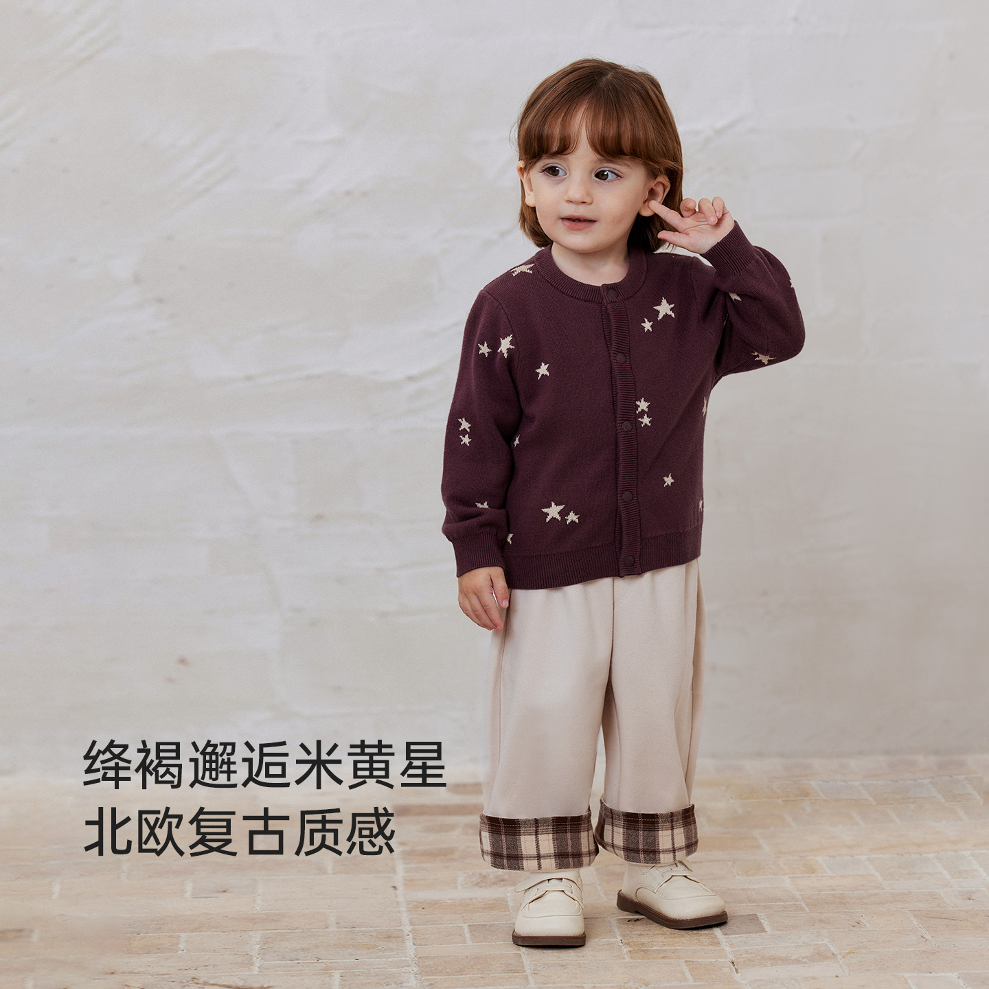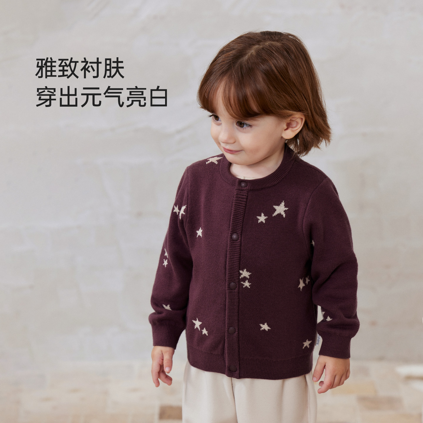babylove婴儿针织外套秋冬纯棉毛织上衣宝宝开衫 保暖百搭星星毛衣