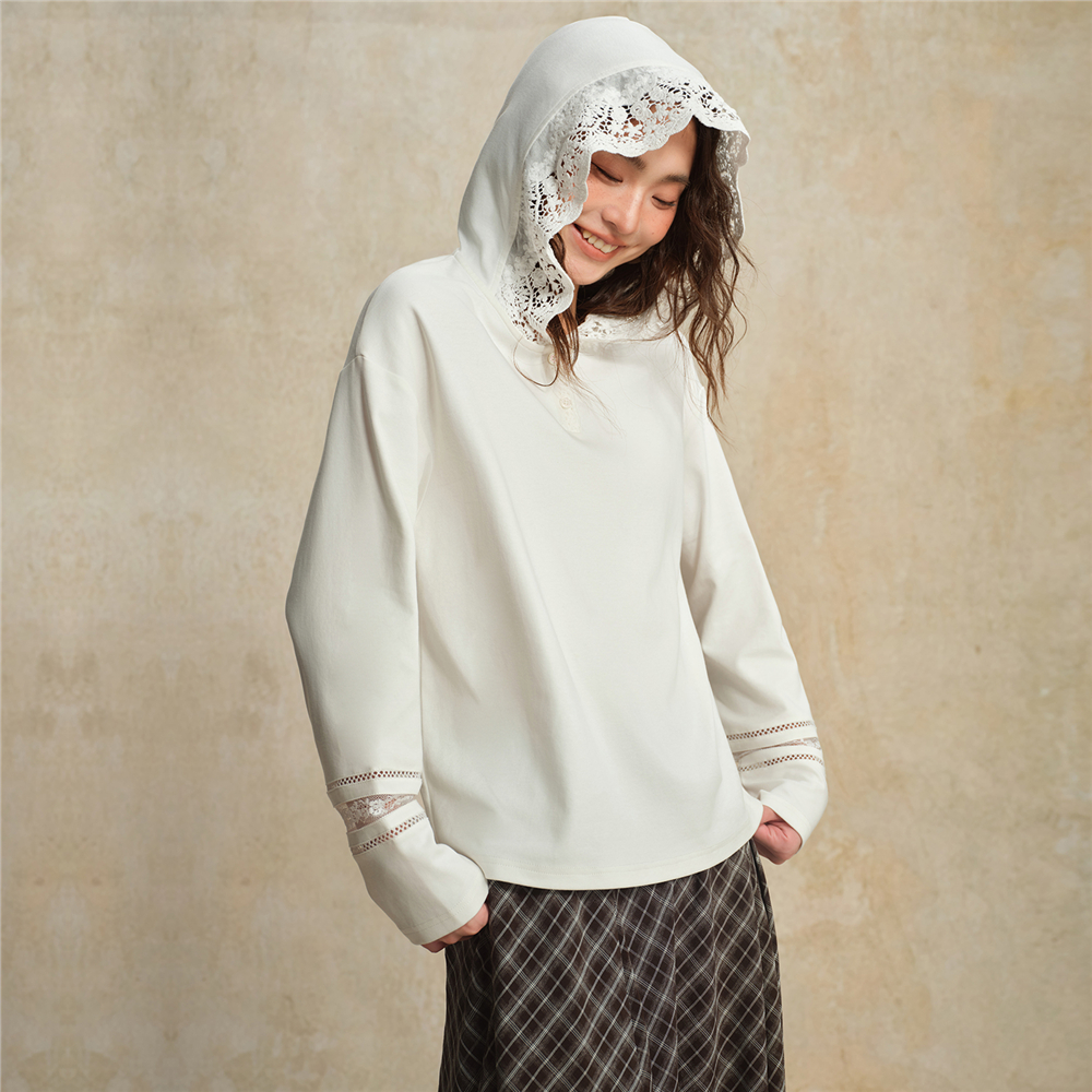 拼接蕾丝镂空连帽上衣18325822 T恤女秋冬新款 设计师款 佐丹奴长袖