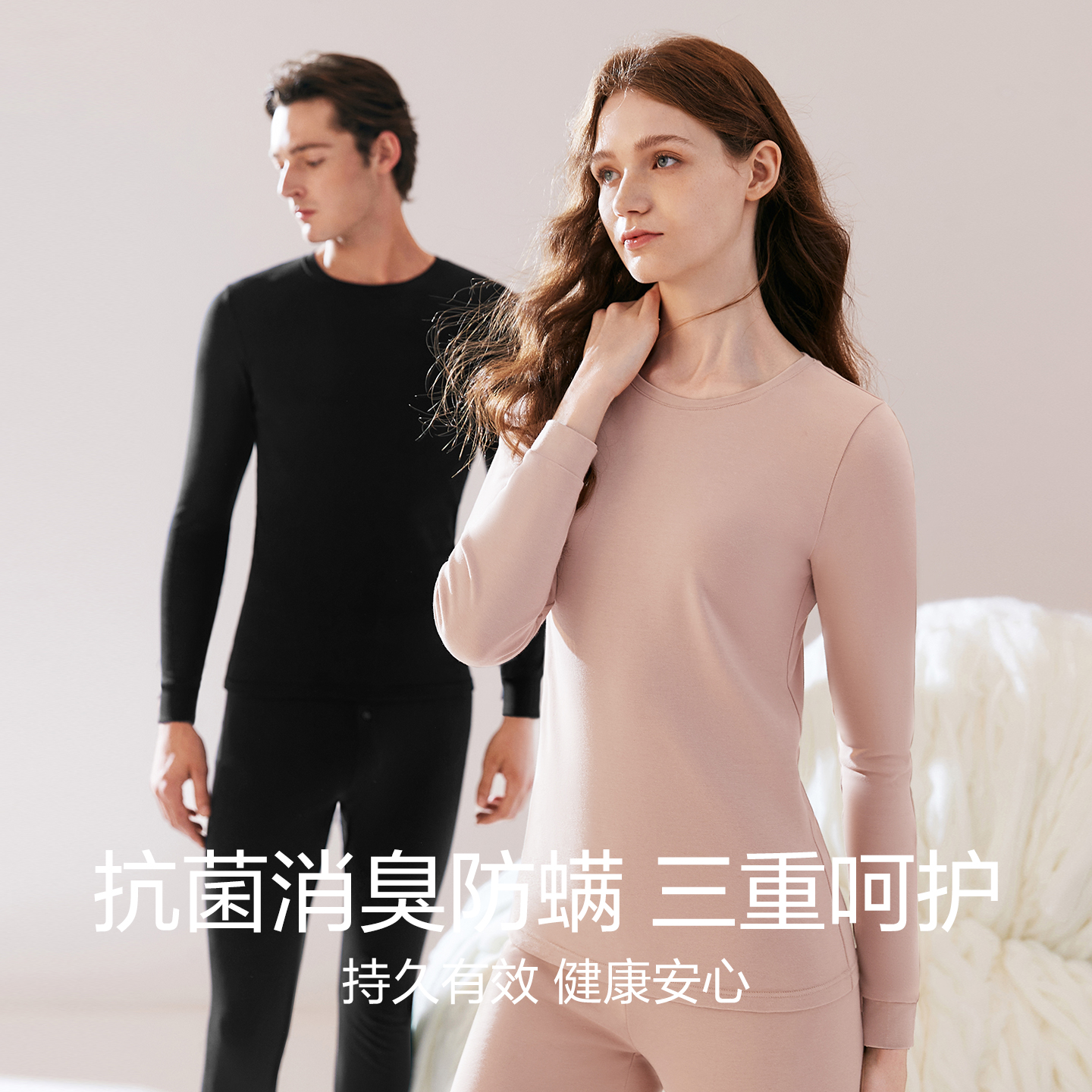 保暖套装 磨毛打底 红豆暖姜精梳纯棉内衣抗菌防螨男女士情侣秋冬季