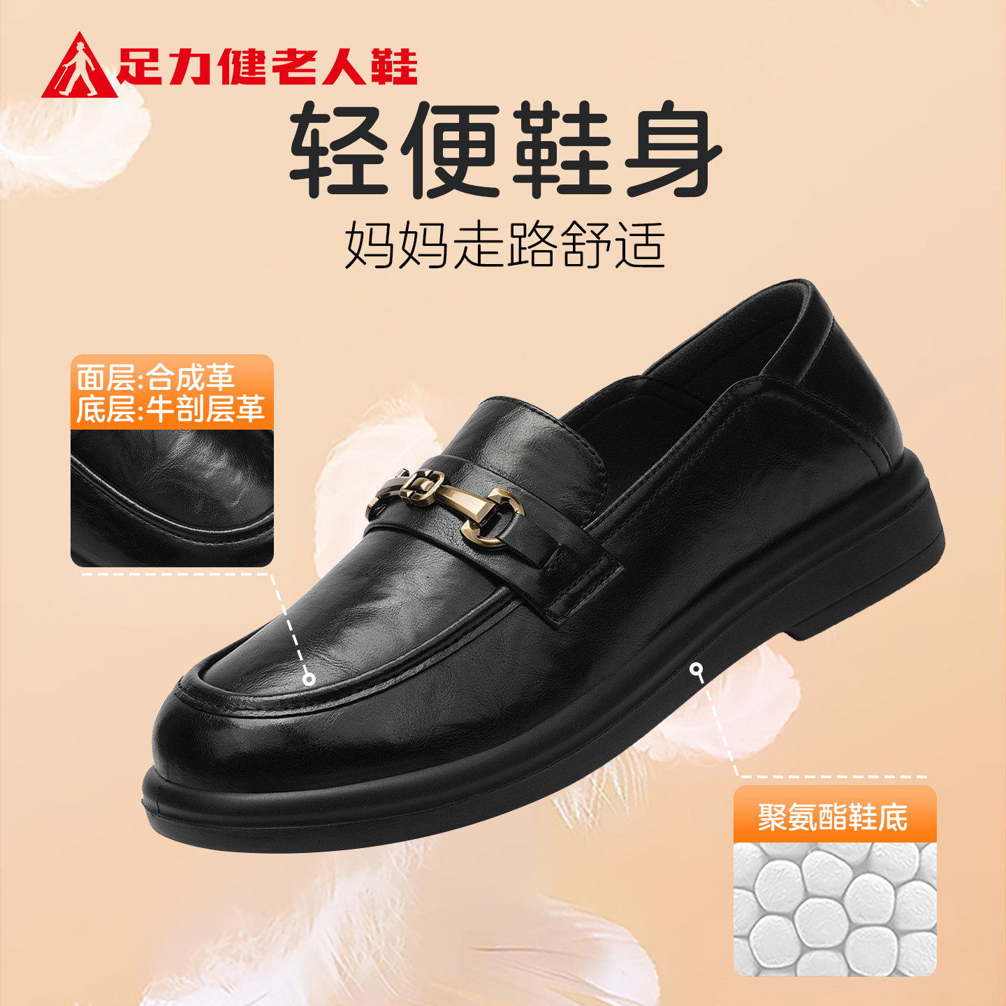 平底乐福鞋 足力健老人鞋 气质轻便一脚蹬女士皮鞋 新款 旗舰2025秋季