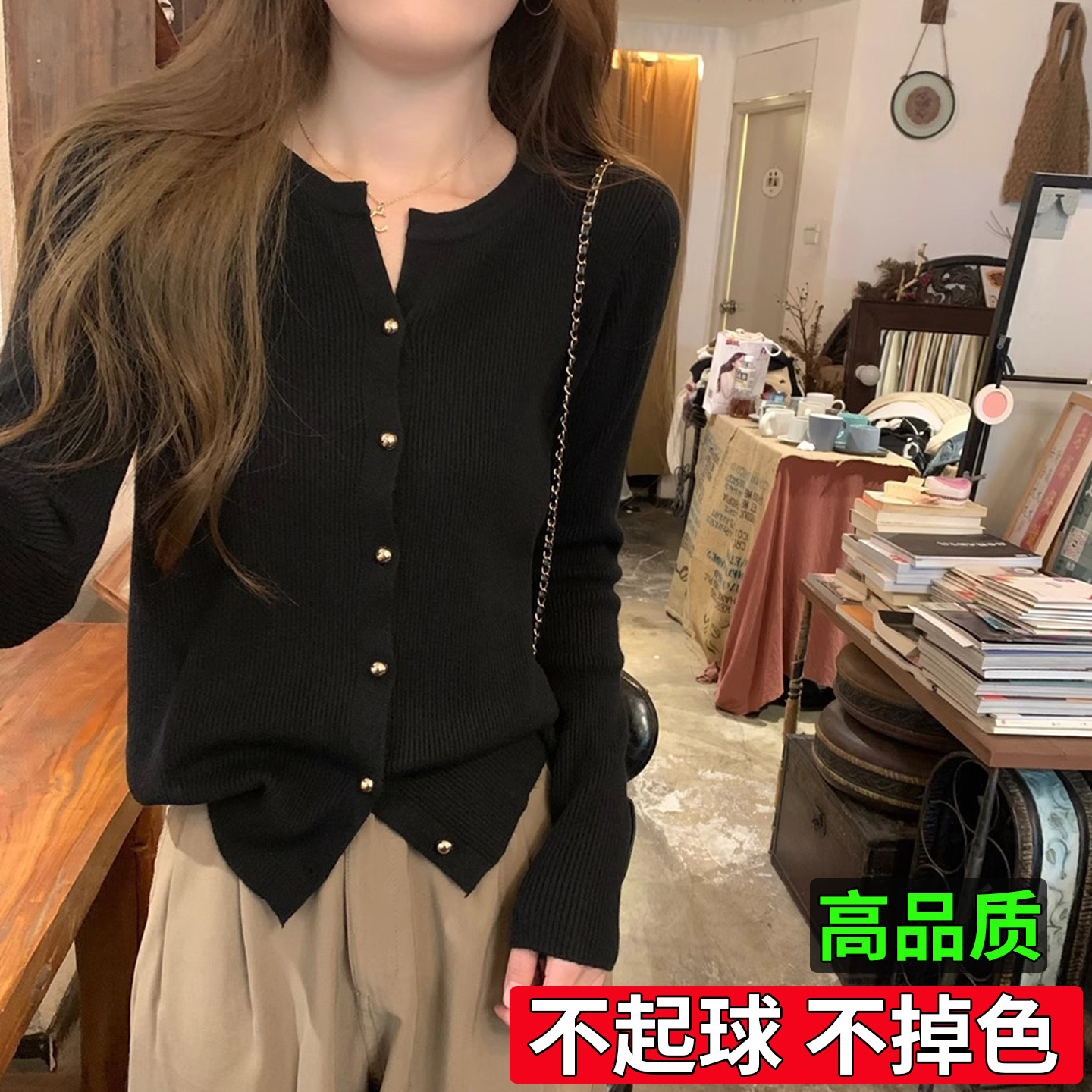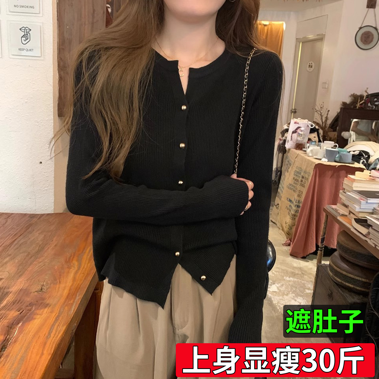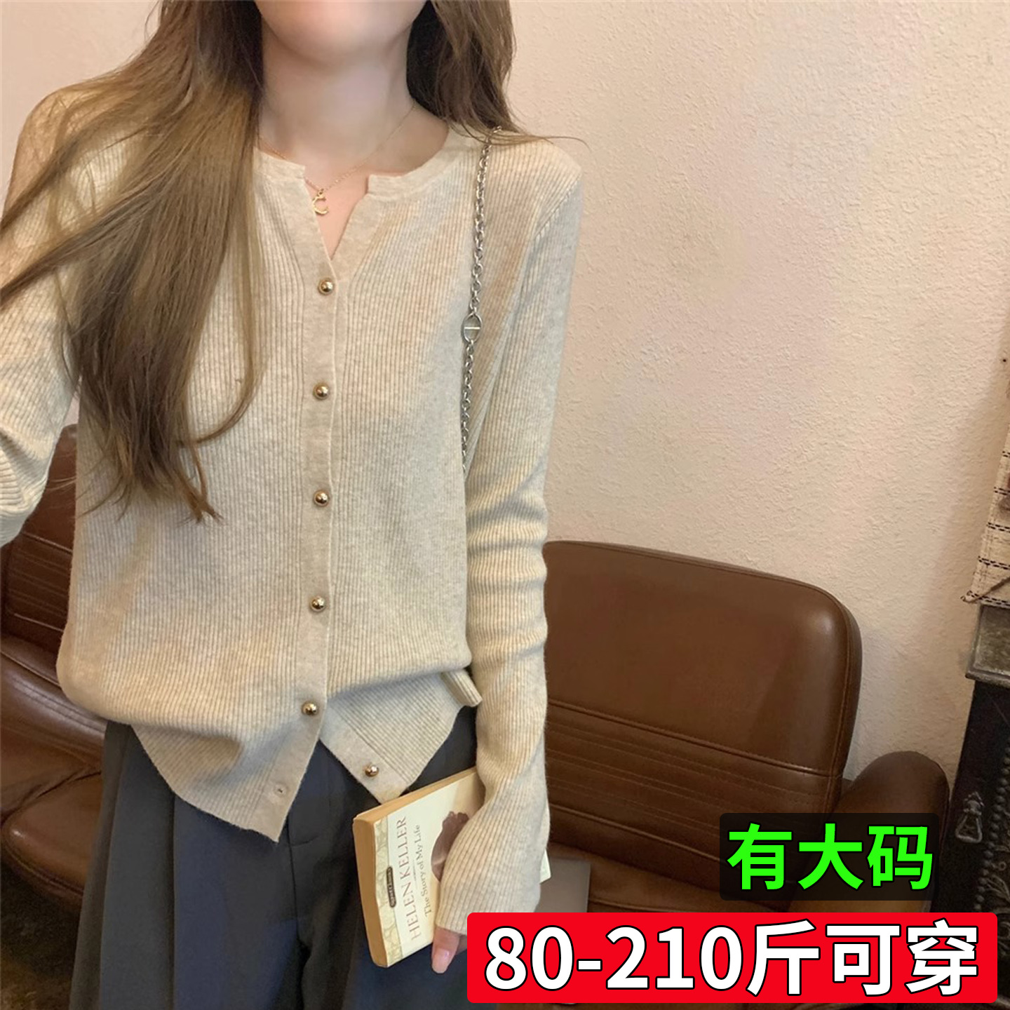 针织打底衫 女士独特设计感长袖 上衣 别致漂亮v领毛衣早秋开衫 大码