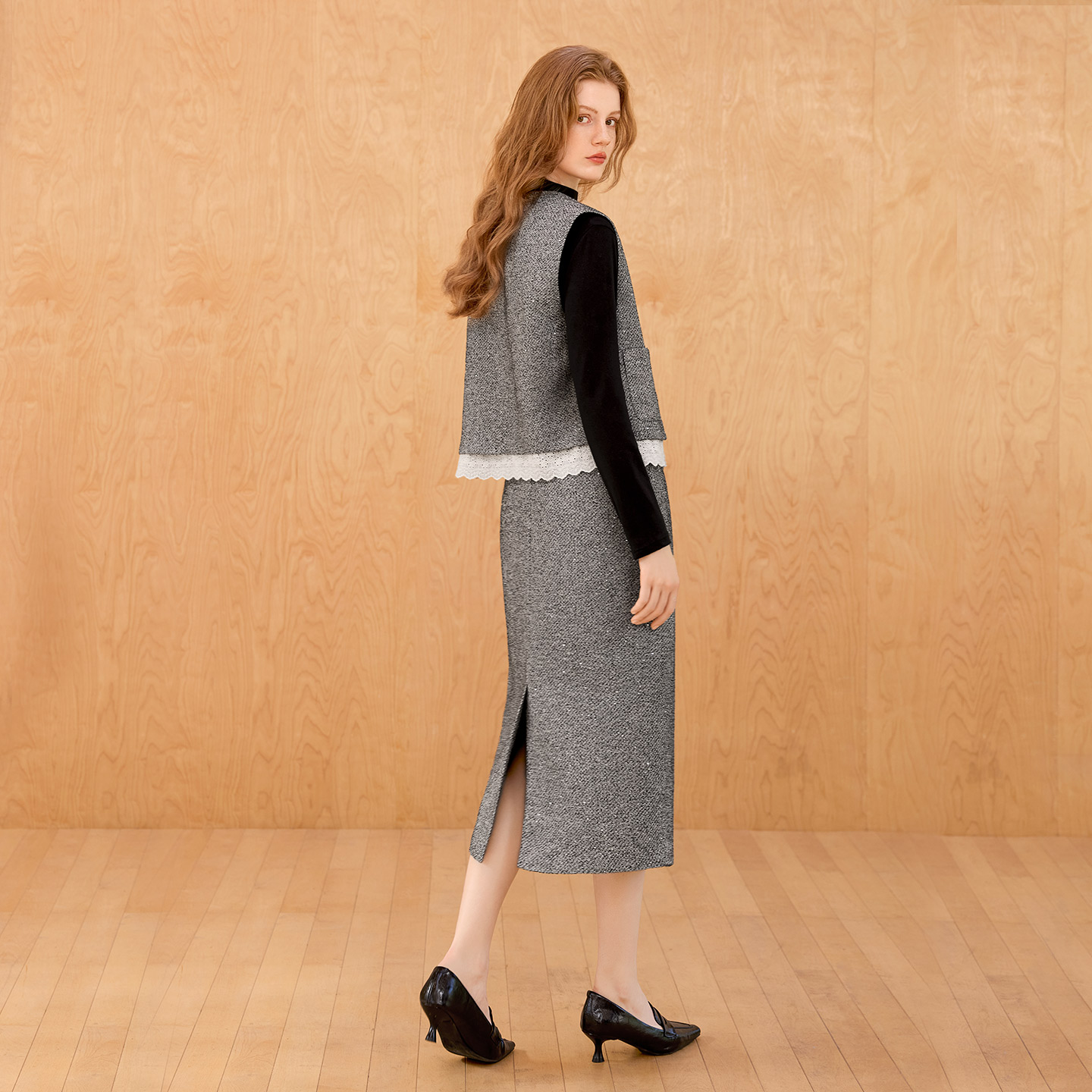 套装 圆领拼接马夹搭中长款 2025秋装 女装 半身裙两件套 新款 她池时尚