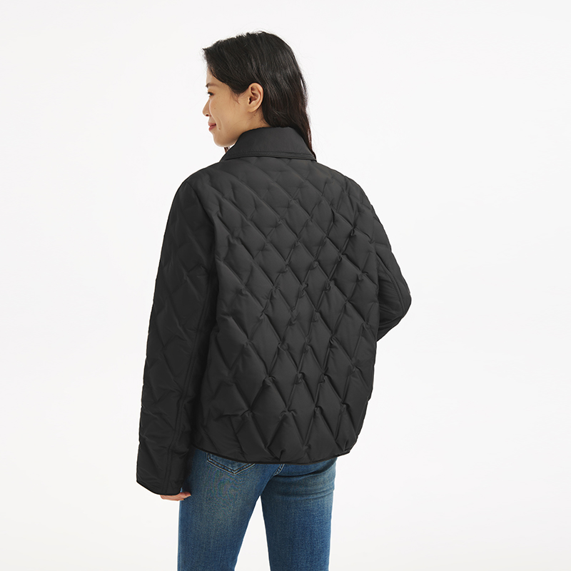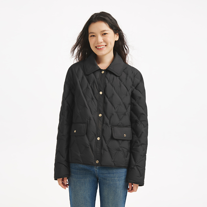 热风女士轻薄羽绒服2025年冬季 小香风气质翻领羽绒服夹克外套 新款
